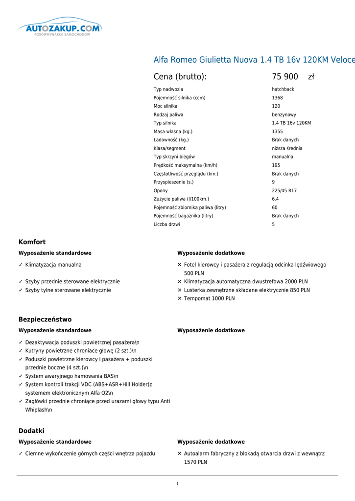 Alfa Romeo Giulietta Nuova 1.4 TB 16v 120KM