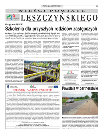 Powiat Leszczyński 19 Program PRIDE Szkolenia dla przyszłych rodziców zastępczych Powiatowe Centrum Pomocy Rodzinie w Lesznie prowadzi szkolenia dla osób, które rozważają podjęcie decyzji o pełnieniu funkcji rodzica zastępczego. Szkolenie prowadzone jest według Programu PRIDE, który jest alternatywą dla skierowań dzieci do domów dziecka i ma na celu znalezienie dla dzieci normalnego domu i rodziny. W Polsce po raz pierwszy PRIDE zaprezentowano 15 lat temu, podczas konferencji na temat reformy systemu opieki nad dziećmi, zorganizowanej przez Towarzystwo „Nasz Dom”. Program został opracowany w USA przy współpracy z kilkudziesięcioma ośrodkami rodzin zastępczych. Dziś dzieli się on na kilka modułów, opracowanych dla różnych potrzeb: pomoc dzieciom molestowanym, pomoc dzieciom z rodzin z problemami alkoholowymi. Programem PRIDE, poza Ameryką, posługują się organizatorzy rodzinnej opieki zastępczej między innymi w krajach Beneluksu, krajach skandynawskich, na Węgrzech i w Estonii. Zadaniem PRIDE jest przygotowanie rodziny do pełnienia różnych form opieki zastępczej nad dziećmi. Realizacja programu odbywa się poprzez warsztaty, więc przekazane wiadomości można jednocześnie przekuć na ćwiczenia praktyczne. Warsztaty, prowadzone przez dwóch licencjonowanych trenerów, obejmują dwanaście czterogodzinnych spotkań. Podczas tych spotkań kandydaci rozwijają swoje umiejętności: opiekuńcze, zaspokajania potrzeb dziecka i kompensowania opóźnień, wzmacniania więzi z rodziną Fot. J. Kuik Blisko 1500 uczniów wzięło udział w projekcie edukacyjnym „Zielona Szkoła”, zrealizowanym po raz kolejny przez Wydział Ochrony Środowiska, Rolnictwa i Leśnictwa Starostwa Powiatowego w Lesznie. Uczniowie z terenu powiatu leszczyńskiego uczestniczyli w zajęciach zorganizowanych w Zakładzie Zagospodarowania Odpadów w Trzebani, Oczyszczalni Ścieków w Henrykowie, Nadleśnictwie Włoszakowice – Leśniczówce „Koczury” oraz w Nadleśnictwie „Karczma Borowa”. Wszystkie te ośrodki, prócz swej głównej powinności, prowadzą także działalność edukacyjną, skierowaną przede wszystkim do młodego pokolenia. naturalną i trwałych, pozytywnych związków, pracy zespołowej dla dobra dziecka. W przypadku rodzin zastępczych zawodowych szkolenie wydłuża się o 30 godzin. Szkolenie przewiduje również dwa spotkania trenerów z kandydatami w ich domu rodzinnym oraz trwające 10 godzin praktyki w funkcjonujących rodzinach zastępczych. Chcemy przystąpić do szkolenia – co musimy zrobić? Aby zostać zakwalifikowanym na szkolenie należy przedłożyć w PCPR następujące dokumenty: wniosek określający gotowość odbycia takiego szkolenia i formę pomocy dziecku – rodzina zastępcza zawodowa lub niezawodowa, życiorys, poświadczenie zameldowania, odpis skrócony aktu małżeństwa, akt urodzenia lub kserokopię dowodu osobistego, zaświadczenie o zatrudnieniu i zarobkach oraz opinię z zakładu pracy, zaświadczenie od lekarza rodzinnego o braku przeciwwskazań do pełnienia funkcji rodziny zastępczej, WAKACYJNY KONKURS WIEDZY O POWIECIE LESZCZYŃSKIM 7. Jak nazywa się impreza, która co roku odbywa się w pierwszą niedzielę kwietnia w Bukówcu Górnym. 8. Podaj nazwę i wysokość najwyższego wzniesienia w Powiecie Leszczyńskim. [email protected] Szczegóły i regulamin konkursu: www.powiat-leszczynski.pl Powiat CZŁOWIEK – NAJLEPSZA INWESTYCJA Powiatowe Centrum Pomocy Rodzinie w Lesznie w 2014 roku realizuje projekt partnerski z Gminnym Ośrodkiem Pomocy Społecznej w Lipnie, pod nazwą „Rozwijamy nasze szanse”. W ramach zadania „Aktywna integracja” PCPR w Lesznie podjął działania na rzecz 12 Rodziców zagrożonych wykluczeniem społecznym w postaci wsparcia asystenta rodzinnego oraz działań służących ich integracji, poprawie samopoczucia, zdobyciu nowych umiejętności i zdobyciu dodatkowych kwalifikacji zawodowych. W sierpniu odbędzie się wyjazd warsztatowy, podczas którego Rodzice będą zdobywać wiedzę i praktyczne umiejętności na temat wychowania dzieci uczestnicząc w warsztatach umiejętności wychowawczych. Dzieci natomiast będą miały zapewnioną opiekę pod okiem profesjonalnych opiekunów. Część Rodziców skorzysta ze sfinansowania wybranych przez siebie kursów zawodowych, dzięki czemu zdobędą nowe kwalifikacje zawodowe i kursów prawo jazdy. Rodzice już korzystają ze wsparcia i pomocy psychologa, który dojeżdża w ich miejsce zamieszkania. Zaplanowano trening zastępowania agresji, warsztaty prawidłowego żywienia oraz warsztaty pierwszej pomocy dla ww. grupy. Jest to grupa osób doświadczających kryzysu w rodzinie, niepełnosprawności swoich dzieci, trudności wychowawczych, problemów alkoholowych, przemocy domowej. Są to osoby w wieku aktywności zawodowej, mające na wychowaniu małoletnie dzieci. Wszelkie działania skierowane do tej grupy mają na celu wzrost jakości życia poprzez zwiększenie zaradności życiowej uczestników projektu. W ramach zadania „Aktywna integracja” GOPS w Lipnie dla 10 uczestników projektu zaplanował kurs umiejętności społecznych, kurs aktywnego poszukiwania pracy, doradztwo zawodowe i psychologiczne, kurs liderstwa społecznego, kurs komputerowy, kreowania własnego wizerunku i prawo jazdy w zależności od potrzeb i trudności uczestników. Do projektu zaangażowano młodzież - jest to 20 osób, które w ramach treningu wyjazdowego zostaną zintegrowane i zmotywowane do aktywnego uczestnictwa w projekcie. A skorzystać będą mogły z zajęć z doradcą zawodowym, zajęć z psychologiem w formie grupowej jak i indywidualnej. Działania te dla ww. grup, a realizowane przez GOPS Lipno, służyć mają zwiększeniu aktywności lokalnej mieszkańców, ich uczestnictwa w życiu społecznym i rozwoju inicjatyw służących rozwiązaniu problemów społecznych. Więcej informacji: www.powiat-leszczynski.pl. Biuro projektu: Pow