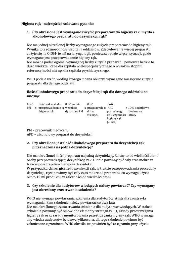 Higiena rąk -‐ najczęściej zadawane pytania: 1. Czy określone jest