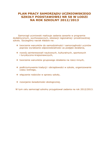 Plan Pracy - Szkoła Podstawowa nr 58 w Łodzi