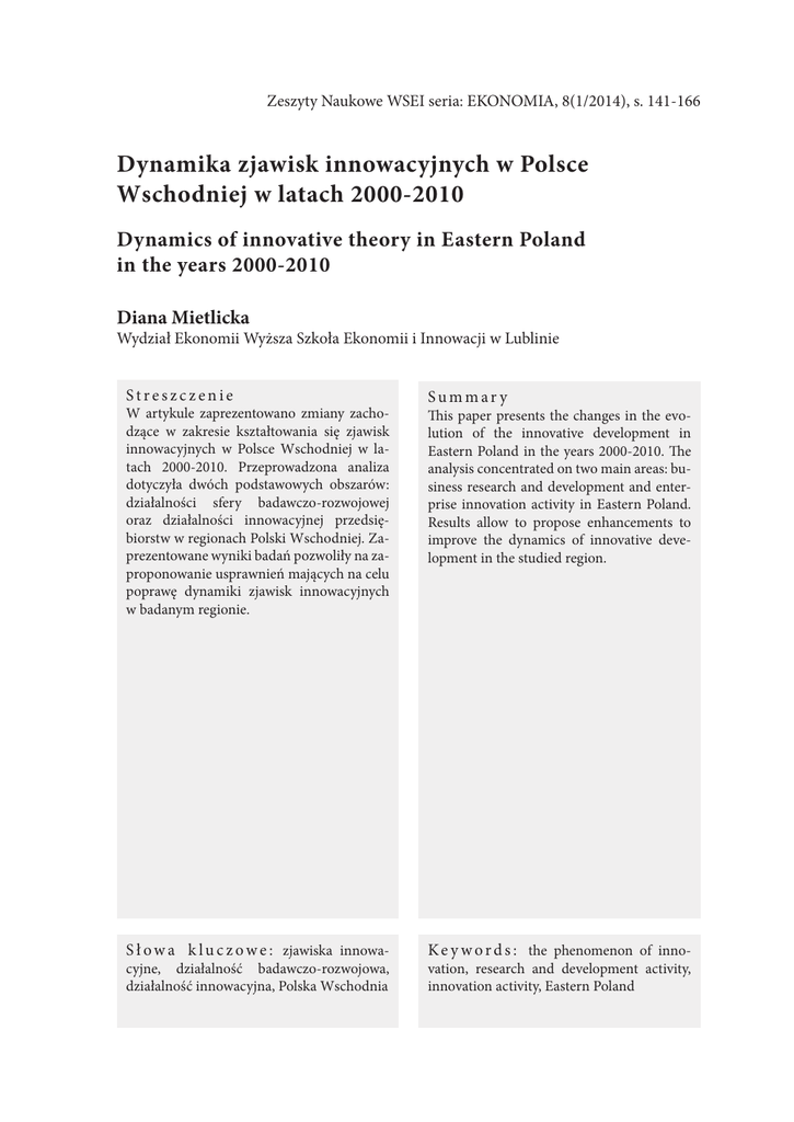 Dynamika zjawisk innowacyjnych w Polsce Wschodniej w latach