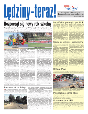 9 (113) wrzesień 2012 ISSN 1732−6818 Lędzińskie pamiątki po JP II Rozpoczął się nowy rok szkolny 16 października minie 34 rocznica wyboru kardynała Karola Wojtyły na papieża. Choć Jan Paweł II, bo takie imię przybrał kardynał Wojtyła, nie ży− je już ponad 7 lat, pamiętamy o waż− nych rocznicach z jego życia. BIL „Lę− dziny−teraz!” także chciałby zaakcen− tować nadchodzącą kolejną rocznicę wyboru pierwszego Polaka na papieża. A że jesteśmy czasopismem lokalnym, śladów z życia papieża i pamiątek po nim szukaliśmy w mieście. Jeśliby się komuś wydawało, że Lę− dziny z Janem Pawłem II nie mają nic wspólnego, jest w wielkim błędzie. Jest W poniedziałek 3 września we wszystkich szkołach i przedszkolach prowadzonych przez miasto naukę rozpoczę− ło 1974 dzieci i młodzieży. W szkołach podstawowych uczy się obecnie 999 uczniów w 47 oddziałach, w tym150 pierwszoklasistów, a w gimnazjach – 435 uczniów w 20 oddziałach, w tym 136 pierwszoklasistów. Edukację przedszkolną rozpoczęło 540 wychowanków w 24 oddziałach. bowiem w mieście osoba, która znała papieża i zachowała wiele pamiątek po nim. To pani Helena Konieczny, sio− stra księdza Franciszka Koniecznego, przyjaciela Karola Wojtyły jeszcze z czasów wojny. Pani Helena zgodziła się opowiedzieć naszym Czytelnikom historię przyjaźni jej brata z Janem Pawłem II. Być może okaże się, że tych opowieści starczy nam na kilka odcinków. Pewne jest jednak, że po− czątek tej historii powinien się znaleźć w październikowym wydaniu naszego miesięcznika Już dziś zapraszamy więc do lektury kolejnego wydania. MJ Przedszkole nr 2. Wbrew wcześniejszym obawom ro− dziców nie ma tłoku w Szkole Podstawo− wej nr 1. Naukę w klasie pierwszej roz− poczęło w „jedynce” 50 uczniów w 14− osobowym oddziale integracyjnym i 2 zwykłych oddziałach 18−osobowych. W ubiegłym roku, dla porównania, w SP 1 powstały cztery klasy pierwsze, w któ− rych naukę podjęło w sumie 83 dzieci. Z osiedla Długosza, gdzie powstały no− we bloki, do „jedynki” przyszło dwoje dzieci, do Gimnazjum nr 1 – trójka. Mało liczna jest także klasa pierwsza− ków w Zespole Szkół w Goławcu. Nau− kę rozpoczęło tu tylko 12 dzieci w wieku 7 i 6 lat. Gdyby nie sześciolatki, trudno byłoby w ogóle stworzyć w Goławcu od− dział. Chociaż kandydatów na przedszkola− ków, jak co roku, nie brakowało, udało się ulokować w przedszkolu nr 1 i 2 wszystkich trzylatków, których ro− dzice pracują. Żeby jednak było to moż− liwe, utworzono dodatkowe oddziały przedszkolne w Szkole Podstawowej nr 1 i w budynku przy ul. Palmowej Gim− nazjum nr 2. Nie ma natomiast od tego roku przedszkolaków w budynku dawnej porodówki, który ze względu na układ architektoniczny nadawał się jedynie na tymczasowe lokum. Zanim jednak dzieci i młodzież ruszy− ły do szkół po wakacjach, w niemal każ− Szkoła Podstawowa nr 1. dej wykonane zostały modernizacje i drobne remonty. W SP 1 przebudowany został wjazd do szkoły od strony ulicy Paderewskiego i powstały miejsca parkingowe, a wokół boiska z nawierzchnią syntetyczną uło− żono chodnik i ustawiono ogrodzenie z piłkochwytami (wysokimi siatkami za bramkami). W Goławcu ruszyły prace przy budo− wie boiska wielofunkcyjnego. Jak już pi− saliśmy projekt obejmuje budowę oświetlonego boiska wielofunkcyjnego do gry w piłkę nożną, ręczną i koszy− kówkę, boiska do gry w siatkówkę i teni− sa ziemnego, parkingu, chodników z ławkami i ogrodzenie terenu łącznie z placem zabaw, który jest częścią plano− wanego obiektu. W tym roku z tego projektu powstanie boisko wielofunkcyjne z tzw. piłkochwy− tami, bramkami, koszami i innym niezbę− dnym wyposażeniem, chodniki z ławe− czkami wokół boiska oraz przebudowany zostanie plac zabaw pod kątem nowego układu zagospodarowania terenu. W Gimnazjum nr 2 w ramach likwida− cji szkód górniczych w budynku przy Palmowej wymienione zostały posadzki i pomalowano ściany a w SP 3 wykona− no drobne remonty. Powody do radości mają przedszkola− ki z Hołdunowa, bowiem w czasie wa− Trwa remont na Pokoju Mirosław Leszczyk Od 10 września trwa remont ulicy Pokoju współfinanso− wany przez powiat i miasto. Prace obejmują wymianę nawie− rzchni na tzw. ciche asfalty, wykonanie zatok autobusowych, budowę chodnika pieszo−rowerowego z lewej strony oraz re− kacji wyrósł im na przedszkolnym po− dwórku kolorowy plac zabaw w kształ− cie pirackiego statku. Stoi on na bezpie− cznym dla maluchów podłożu elasty− cznym, wykonanym z płytek kauczuko− wo−poliuretanowych. Samo urządzenie także spełnia wszelkie wymogi bezpie− czeństwa. Żadnych prac, poza niezbędnymi, nie wykonano natomiast w budynku Gim− nazjum nr 1 i Przedszkolu nr 1. Obie pla− cówki czekają bowiem na przenosiny od kolejnego roku szkolnego do nowych siedzib: G1 do SP1 a przedszkole do no− wego obiektu, który powstaje przy bu− dynku MKS−u. Także w „trójce” wstrzy− mywane są większe remonty i moderni− zacje do czasu zakończenia eksploatacji węgla pod budynkiem. Komisja Edukacji Rady Miasta po lu− stracji lędzińskich placówek oświato− wych poinformowała Radę na sierpnio− wej sesji, że są one przygotowane na no− wy rok szkolny. Radni podkreślali je− dnak, że przed kolejnym rokiem szkol− nym musi powstać nowa siedziba Przed− szkola nr 1 a budynek szkolny w Goław− cu musi zostać wypoziomowany przez KWK „Ziemowit” w ramach likwidacji szkód górniczych. W dalszej kolejności, natomiast, trzeba się będzie skoncentro− wać na remontach w hołdunowskiej pod− stawówce. mont przejazdu kolejowego. Remont drogi prowadzi firma Drogopol−ZW z Katowic, a przejazdu kolejowego kopalnia „Piast” i Zakład Linii Kolejowych PKP. Droga na długości 640 metrów od skrzyżowa
