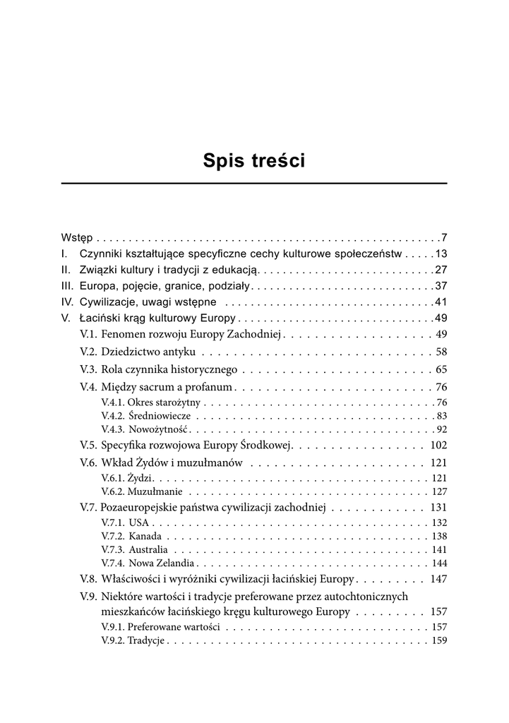 Spis treści Wstęp . . . . . . . . . . . . . . . . . . . . . . . . . . . . . I. Czynniki kształtujące specyficzne cechy II. Związki kultury i tradycji z edukacją. . . . III. Europa, pojęcie, granice, podziały . . . . . IV. Cywilizacje, uwagi wstępne . . . . . . . . . V. Łaciński krąg kulturowy Europy . . . . . . . V.1. V.2. V.3. V.4. ........ kulturowe ........ ........ ........ ........ Fenomen rozwoju Europy Zachodniej . Dziedzictwo antyku . . . . . . . . . . . Rola czynnika historycznego . . . . . . Między sacrum a profanum . . . . . . . . . . . . . . . . . . . . . . . . . . . ............ społeczeństw . ............ ............ ............ ............ . . . . . . . . . . . . . . . . . . . . . . . . . . . . . . . . . . . . . . . . . . . . . . . . . . . . . . . . . . . . . . . . . . . .7 . 13 . 27 . 37 . 41 . 49 . . . . 49 58 65 76 V.4.1. Okres starożytny . . . . . . . . . . . . . . . . . . . . . . . . . . . . . . . . 76 V.4.2. Średniowiecze . . . . . . . . . . . . . . . . . . . . . . . . . . . . . . . . . 83 V.4.3. Nowożytność . . . . . . . . . . . . . . . . . . . . . . . . . . . . . . . . . . 92 V.5. Specyfika rozwojowa Europy Środkowej. . . . . . . . . . . . . . . . . 102 V.6. Wkład Żydów i muzułmanów . . . . . . . . . . . . . . . . . . . . . . 121 V.6.1. Żydzi. . . . . . . . . . . . . . . . . . . . . . . . . . . . . . . . . . . . . . 121 V.6.2. Muzułmanie . . . . . . . . . . . . . . . . . . . . . . . . . . . . . . . . . 127 V.7. Pozaeuropejskie państwa cywilizacji zachodniej . . . . . . . . . . . . 131 V.7.1. V.7.2. V.7.3. V.7.4. USA . . . . . . . Kanada . . . . . Australia . . . . Nowa Zelandia . . . . . . . . . . . . . . . . . . . . . . . . . . . . . . . . . . . . . . . . . . . . . . . . . . . . . . . . . . . . . . . . . . . . . . . . . . . . . . . . . . . . . . . . . . . . . . . . . . . . . . . . . . . . . . . . . . . . . . . . . . . . . 132 138 141 144 V.8. Właściwości i wyróżniki cywilizacji łacińskiej Europy . . . . . . . . . 147 V.9. Niektóre wartości i tradycje preferowane przez autochtonicznych mieszkańców łacińskiego kręgu kulturowego Europy . . . . . . . . . 157 V.9.1. Preferowane wartości . . . . . . . . . . . . . . . . . . . . . . . . . . . . 157 V.9.2. Tradycje . . . . . . . . . . . . . . . . . . . . . . . . . . . . . . . . . . . . 159 6 CYWILIZACJA ZACHODNIA ZACHODNIA.. Specyfika rozwoju, tradycje, preferowane wartości VI. Cywilizacja prawosławna . . . . . . . . . . . . . . . . . . . . . . . . . . . . . . . . . . . 161 VI.1. Hellenistyczne dziedzictwo . . . . . . . . . . . . . . . . . . . . . . . 164 VI.2. Bałkany i strefa buforowa . . . . . . . . . . . . . . . . . . . . . . . . 169 VI.2.1. Państwa bałkańskie . . . . . . . . . . . . . . . . . . . . . . . . . . . . . 170 VI.2.2. Strefa buforowa . . . . . . . . . . . . . . . . . . . . . . . . . . . . . . . 173 VI.3. Rosja i jej prawosławie . . . . . . . . . . . . . . . . . . . . . . . . . . 175 VI.3.1. Rosja carska do 1916 r. . . . . . . . . . . . . . . . . . . . . . . . . . . . 175 VI.3.2. Pod rządami komunistów i Federacji Rosyjskiej . . . . . . . . . . . . 183 VI.3.2. Przynależność cywilizacyjna Rosji . . . . . . . . . . . . . . . . . . . . 185 VI.4. Współcześni prawosławni i ich stosunek do łacińskiej Europy . . . 191 VII. Cywilizacje imigrantów w Europie Zachodniej . . . . . . . . . . . . . . . . . . . 195 VII.1. Chiny i ich cywilizacja. . . . . . VII.2. Japonia . . . . . . . . . . . . . . VII.3. Cywilizacja indyjska . . . . . . . VII.4. Cywilizacja muzułmańska. . . . VII.5. Cywilizacja afrykańska . . . . . VII.6. Cywilizacja latynoamerykańska . . . . . . VIII. Multikulturowe społeczeństwa Europy Zakończenie . . . . . . . . . . . . . . . . . . . . . . . Bibliografia . . . . . . . . . . . . . . . . . . . . . . . . Western civilisation (Resume) . . . . . . . . . . Indeks miejscowości . . . . . . . . . . . . . . . . . Indeks osób. . . . . . . . . . . . . . . . . . . . . . . . . . . . . . . . . . . . . . . . . . . . . . . . . . . . . . . . . . . . . . . . . . . . . . . . . . . . . . . . . . . . . . . . . . Zachodniej . .......... .......... .......... .......... .......... . . . . . . . . . . . . . . . . . . . . . . . . . . . . . . . . . . . . . . . . . . . . . . . . . . . . . . . . . . . . . . . . . . . . . . . . . . . . . . . . . . . . . . . . . . . . . . . . . . . . . . 195 199 202 205 212 219 . . . . . . . . . . . . . . . . . . . . . . . . . 229 . 237 . 247 . 261 . 263 . 267