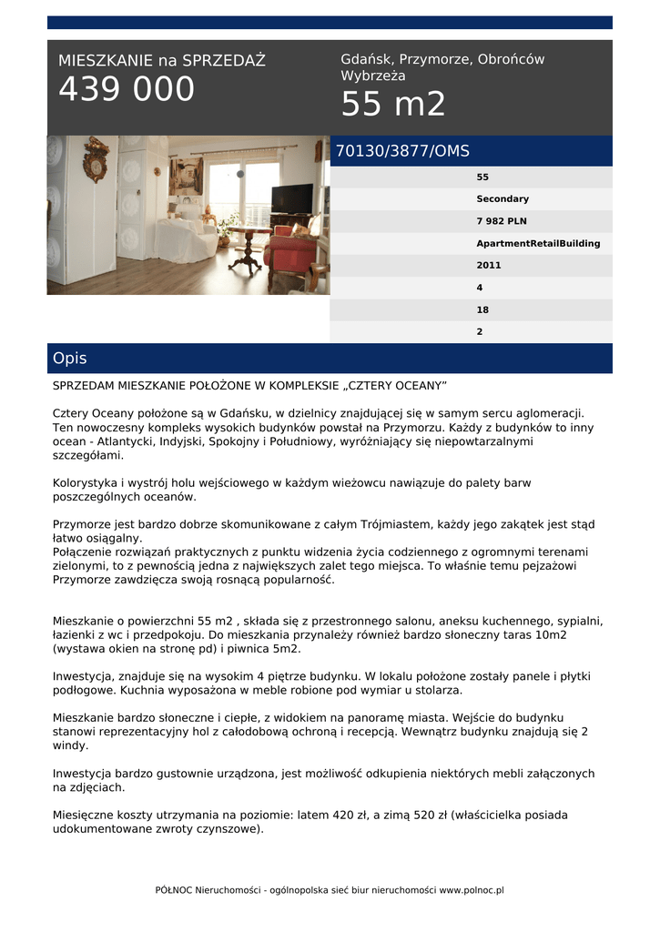 439 000 55 m2 - PÓŁNOC Nieruchomości