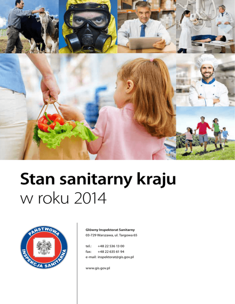 Stan sanitarny kraju w roku 2014 Główny Inspektorat Sanitarny 03-729 Warszawa, ul. Targowa 65 tel.: +48 22 536 13 00 fax: +48 22 635 61 94 e-mail:[email protected] www.gis.gov.pl SPIS TREŚCI Wstęp . . . . . . . . . . . . . . . . . . . . . . . . . . . . . . . . . . . . . . . . . . . . . . . . . . . . . . . . . . . . . . . . . . . . . . . . . . . . . . 4 95-lecie służb sanitarnych w Polsce / 60-lecie Państwowej Inspekcji Sanitarnej . . . . . . . . . . . . . . . . . . . . . . . . . . . . . . 6 Sytuacja epidemiologiczna w zakresie chorób zakaźnych . . . . . . . . . . . . . . . . . . . . . . . . . . . . . . . . . . . . . . . . . . . 15 1. Sytuacja epidemiologiczna wybranych chorób zakaźnych . . . . . . . . . . . . . . . . . . . . . . . . . . . . . . . . . . . . . . . . . 15 2. Zakażenia jelitowe i zatrucia pokarmowe . . . . . . . . . . . . . . . . . . . . . . . . . . . . . . . . . . . . . . . . . . . . . . . . . . . . .17 3.Krztusiec . . . . . . . . . . . . . . . . . . . . . . . . . . . . . . . . . . . . . . . . . . . . . . . . . . . . . . . . . . . . . . . . . . . . . . . . . .18 4.Różyczka . . . . . . . . . . . . . . . . . . . . . . . . . . . . . . . . . . . . . . . . . . . . . . . . . . . . . . . . . . . . . . . . . . . . . . . . . .19 5.Odra . . . . . . . . . . . . . . . . . . . . . . . . . . . . . . . . . . . . . . . . . . . . . . . . . . . . . . . . . . . . . . . . . . . . . . . . . . . . .20 6.Poliomyelitis . . . . . . . . . . . . . . . . . . . . . . . . . . . . . . . . . . . . . . . . . . . . . . . . . . . . . . . . . . . . . . . . . . . . . . . 21 7. Zachorowania i podejrzenia zachorowań na grypę . . . . . . . . . . . . . . . . . . . . . . . . . . . . . . . . . . . . . . . . . . . . . . 22 8. Wirusowe zapalenie wątroby typu C . . . . . . . . . . . . . . . . . . . . . . . . . . . . . . . . . . . . . . . . . . . . . . . . . . . . . . . 24 9. Choroby tropikalne . . . . . . . . . . . . . . . . . . . . . . . . . . . . . . . . . . . . . . . . . . . . . . . . . . . . . . . . . . . . . . . . . . .26 10.Działania podejmowane w związku z epidemią choroby wirusowej Ebola (EVD) w Afryce Zachodniej (Liberia, Gwinea i Sierra Leone) . . . . . . . . . . . . . . . . . . . . . . . . . . . . . . . . . . . . . . . . . . . . . 28 11. Sytuacja epidemiologiczna chorób odzwierzęcych . . . . . . . . . . . . . . . . . . . . . . . . . . . . . . . . . . . . . . . . . . . . . .29 12.Zachorowania na inwazyjną chorobę meningokokową . . . . . . . . . . . . . . . . . . . . . . . . . . . . . . . . . . . . . . . . . . .34 13.Zachorowania na inwazyjną chorobę pneumokokową . . . . . . . . . . . . . . . . . . . . . . . . . . . . . . . . . . . . . . . . . . . .35 14.Gruźlica . . . . . . . . . . . . . . . . . . . . . . . . . . . . . . . . . . . . . . . . . . . . . . . . . . . . . . . . . . . . . . . . . . . . . . . . . . 36 15.Występowanie ognisk epidemicznych w podmiotach leczniczych w Polsce w 2014 roku . . . . . . . . . . . . . . . . . . . . . .38 16.Szczepienia ochronne jako element zwalczania chorób zakaźnych . . . . . . . . . . . . . . . . . . . . . . . . . . . . . . . . . . . .45 17. Kierunki ewolucji Programu Szczepień Ochronnych . . . . . . . . . . . . . . . . . . . . . . . . . . . . . . . . . . . . . . . . . . . . . 45 18.Działania Państwowej Inspekcji Sanitarnej związane z dystrybucją szczepionek w Polsce . . . . . . . . . . . . . . . . . . . . .46 19.Działania Państwowej Inspekcji Sanitarnej na rzecz promocji szczepień ochronnych . . . . . . . . . . . . . . . . . . . . . . . .47 20.Uchylanie się od obowiązku szczepień ochronnych – działania organów Państwowej Inspekcji Sanitarnej podejmowane w celu egzekwowania obowiązku szczepień . . . . . . . . . . . . . . . . . . . . . . . . . . . . . . . . . . . . . . . . 47 Stan sanitarny zakładów żywności, żywienia i przedmiotów użytku . . . . . . . . . . . . . . . . . . . . . . . . . . . . . . . . . . . . 51 1. Zakres nadzoru sanitarnego . . . . . . . . . . . . . . . . . . . . . . . . . . . . . . . . . . . . . . . . . . . . . . . . . . . . . . . . . . . . .51 2. Ogólna ocena obiektów żywności i żywienia . . . . . . . . . . . . . . . . . . . . . . . . . . . . . . . . . . . . . . . . . . . . . . . . . .54 3. Stan sanitarny środków transportu żywności . . . . . . . . . . . . . . . . . . . . . . . . . . . . . . . . . . . . . . . . . . . . . . . . . .55 4. Jakość zdrowotna środków spożywczych . . . . . . . . . . . . . . . . . . . . . . . . . . . . . . . . . . . . . . . . . . . . . . . . . . . . 55 5. Jakość zdrowotna materiałów i wyrobów przeznaczonych do kontaktu z żywnością oraz kosmetyków . . . . . . . . . . . .63 6. Ocena sposobu żywienia . . . . . . . . . . . . . . . . . . . . . . . . . . . . . . . . . . . . . . . . . . . . . . . . . . . . . . . . . . . . . . .64 7.Podsumowanie . . . . . . . . . . . . . . . . . . . . . . . . . . . . . . . . . . . . . . . . . . . . . . . . . . . . . . . . . . . . . . . . . . . . . 65 Zapobiegawczy nadzór sanitarny . . . . . . . . . . . . . . . . . . . . . . . . . . . . . . . . . . . . . . . . . . . . . . . . . . . . . . . . . . . 67 1. Zapobiegawczy nadzór sanitarny . . . . . . . . . . . . . . . . . . . . . . . . . . . . . . . . . . . . . . . . . . . . . . . . . . . . . . . . . .67 2.Podsumowanie . . . . . . . . . . . . . . . . . . . . . . . . . . . . . . . . . . . . . . . . . . . . . . . . . . . . . . . . . . . . . . . . . . . . . 71 Stan sanitarny obiektów użyteczności publicznej . . . . . . . . . . . . . . . . . . . . . . . . . . . . . . . . . . . . . . . . . . . . . . . . 73 1. Informacje ogólne . . . . . . . . . . . . . . . . . . . . . . . . . . . . . . . . . . . . . . . . . . . . . . . . . . . . . . . . . . . . . . . . . . . .73 2. Stan sanitarny wybranych rodzajów obiektów . . . . . . . . . . . . . . . . . . . . . . . . . . . . . . . . . . . . . . . . . . . . . . . . . 74 3. Odpady medyczne . . . . . . . . . . . . . . . . . . . . . . . . . . . 