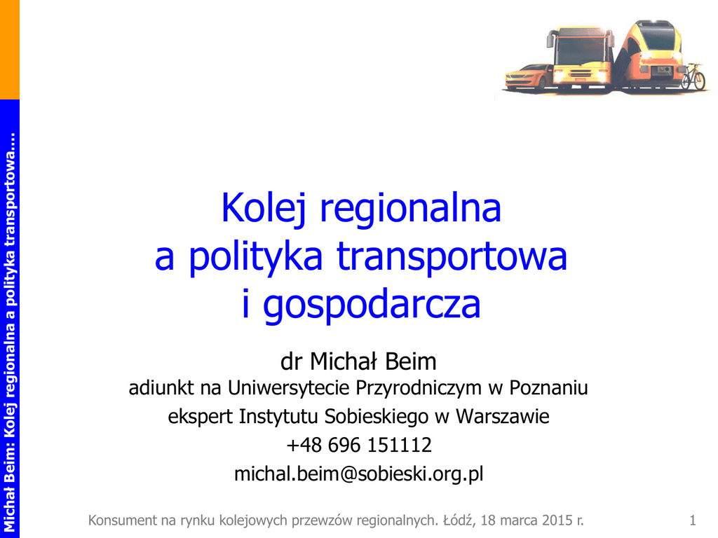 Michał Beim: Kolej regionalna a polityka transportowa…. Kolej regionalna a polityka transportowa i gospodarcza dr Michał Beim adiunkt na Uniwersytecie Przyrodniczym w Poznaniu ekspert Instytutu Sobieskiego w Warszawie +48 696 151112 [email protected] Konsument na rynku kolejowych przewzów regionalnych. Łódź, 18 marca 2015 r. 1 Michał Beim: Kolej regionalna a polityka transportowa…. Wstęp Od lat 90. XX w. zmiana podejścia do kolei: urynkowienie usług i podział kolei. Skutkowało to zmianą prawa unijnego. I Pakiet kolejowy (dyrektywy 96/48/WE, 2001/12/WE, 2001/13/WE, 2001/14/WE, 2001/16/WE) II Pakiet kolejowy (dyrektywy 2004/49/WE, 2004/50/WE, 2004/51/WE_ III Pakiet kolejowy (dyrektywy 2007/58/WE, 2007/59/WE i rozporządzenia 1370/2007, 1371/2007) Konsument na rynku kolejowych przewzów regionalnych. Łódź, 18 marca 2015 r. 2 Michał Beim: Kolej regionalna a polityka transportowa…. Wstęp Różne funkcjonowanie rynków kolejowych w Europie: – Szwecja – modelowy konkurencyjnego rynek kolejowy – Niemcy, Czechy – ewolucja w stronę konkurencyjnego rynku – Polska – liberalizacja w regresie – Francja – faktyczny monopol – Finlandia – prawny monopol Główne bariery dla ogólnoeuropejskiego rynku kolejowego: – homologacje – problemy interoperacyjności – przepisy odnośnie organizacji rynku Konsument na rynku kolejowych przewzów regionalnych. Łódź, 18 marca 2015 r. 3 Michał Beim: Kolej regionalna a polityka transportowa…. Wstęp Trzy zasadnicze modele kolei regionalnych w Europie: • przewoźnik publiczny ogólnokrajowy • przewoźnik publiczny regionalny • przewoźnik prywatny, wyłoniony w przetargu Istnieją również modele koncesyjne, najrzadziej spotykane. Wybór opcji zazwyczaj silnie uzależniony jest od polityki gospodarczej państwa. Konsument na rynku kolejowych przewzów regionalnych. Łódź, 18 marca 2015 r. 4 Michał Beim: Kolej regionalna a polityka transportowa…. Typy przewoźników ogólnokrajowy regionalny prywatny • państwo odpowiada za • łatwość kontroli ze funkcjonowanie firmy strony organizatora • duża instytucja posiada • łatwość zamawiania dużą wiedzę taboru, koordynacji operacyjną, know-how inwestycji • transparentność kosztów • niska cena • rozwój gospodarczy • model wspierany przez UE • brak realnej kontroli nad podmiotem (politycznej, ekonomicznej) • monopolizacja rynku • brak elastyczności przy funkcjonowaniu • wzrost cen, gdy niepewne otoczenie (remonty torów) wymaga wysokiej kultury politycznej – kontroli społecznej • skala nie służy innowacjom • monopolizacja rynku • szybki wzrost kosztów funkcjonowania wymaga silnej władzy regionalnej wymaga umiejętności w przygotowywaniu przetargów Konsument na rynku kolejowych przewzów regionalnych. Łódź, 18 marca 2015 r. 5 200% 180% długodystansowe regionalne 160% 140% 120% 100% 80% 60% Konsument na rynku kolejowych przewzów regionalnych. Łódź, 18 marca 2015 r. Źródło: oprac. wł. na podstawie DESTATIS Niemiecka kolej przewiozła 2,4 mld pasażerów. 94,7% z tego przewiozły koleje regionalne! 19 91 19 92 19 93 19 94 19 95 19 96 19 97 19 98 19 99 20 00 20 01 20 02 20 03 20 04 20 05 20 06 20 07 20 08 20 09 20 10 Michał Beim: Kolej regionalna a polityka transportowa…. Rynek niemiecki 6 Rynek niemiecki Michał Beim: Kolej regionalna a polityka transportowa…. 700 Praca eksploatacyjna kolei regionalnych w Niemczech od początku reformy 600 500 400 DB Regio niezalżni 300 200 100 0 1994 2000 2001 2002 2003 2004 2005 2006 2007 2008 2009 2010 2011 2012 Konsument na rynku kolejowych przewzów regionalnych. Łódź, 18 marca 2015 r. 2013 7 Michał Beim: Kolej regionalna a polityka transportowa…. Zarządzanie kolejami Podstawę prawną stanowi ustawa o regionalizacji pasażerskiego transportu publicznego z 27.12.1993 r. obowiązująca od 01.01.1996 r. Finansowanie kolei zapewnione ustawowo – pochodzi z podatku od olei mineralnych. Wysokość jednak niezależna od realnych wpływów z podatku. W 2010 r. było to 6,9 mld EUR. Nadrenii-Palatynatowi przypadało 5,24% tej kwoty. Podział pomiędzy kraje związkowe wg algorytmu bazującego na pracy przewozowej. Zmiany zasad podziału raz na kilkanaście lat. Znaczący wzrost liczby pasażerów od czasów regionalizacji. Konsument na rynku kolejowych przewzów regionalnych. Łódź, 18 marca 2015 r. 8 Michał Beim: Kolej regionalna a polityka transportowa…. Rynek w liczbach Koleje regionalne w Niemczech to: • 16 organizatorów • 27 organizacji działających w imieniu organizatorów • 68 przewoźników regionalnych wykonujących usługi (grudzień 2013 r.) • ok. 80 związków taryfowych • ok. 30 zarządców infrastruktury torowej • 7 mld EUR dofinansowanie • ok. 9 mld EUR wartości rynku • ponad połowa rynku przewozów kolejowych Konsument na rynku kolejowych przewzów regionalnych. Łódź, 18 marca 2015 r. 9 Michał Beim: Kolej regionalna a polityka transportowa…. Zarządzanie kolejami Trzy wzorce funkcjonowania zarządów kolei regionalnych: - bezpośrednio przez kraje związkowe - powierzenie zarządzania kolejami związkom celowym - powierzenie zadania organizacji przewozów kolejowych związkom komunikacyjnym i taryfowym. źródło: Maximilian Dörrbecker Konsument na rynku kolejowych przewzów regionalnych. Łódź, 18 marca 2015 r. 10 Michał Beim: Kolej regionalna a polityka transportowa…. Nadzór rynku kolejowego W Niemczech nadzór nad rynkiem kolejowym sprawują: – Eisenbahn-BundesAmt – nadzór techniczny – BundesNetzAgentur – dostęp do rynków sieciowych – KartellAmt – urząd antymonopolowy – izba obrachunkowa Rozdział instytucji ma uniezależnić kluczowe decyzje od „lobby kolejowego” Konsument na rynku kolejowych przewzów regionalnych. Łódź, 18 marca 2015 r. 11 Michał Beim: Kolej regionalna a polityka transportowa…. Idea taktu Główne założenia taktu: - koordynacja rozkładów - dopasowanie 