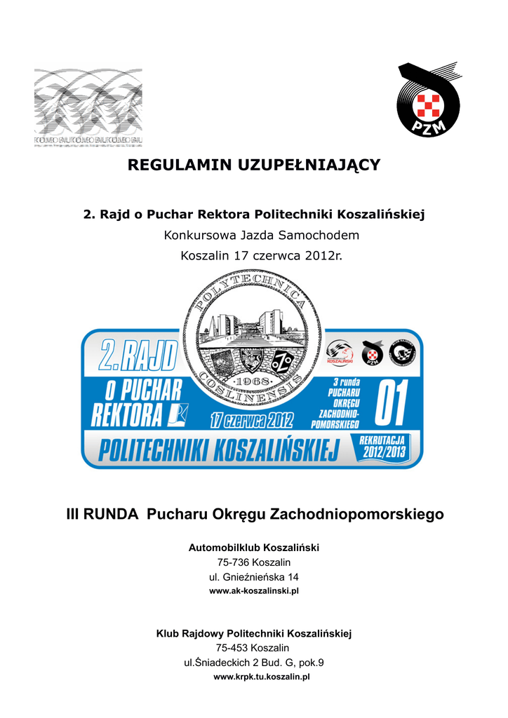 Regulamin Uzupełniający 2.Rajdu o Puchar Rektora PK