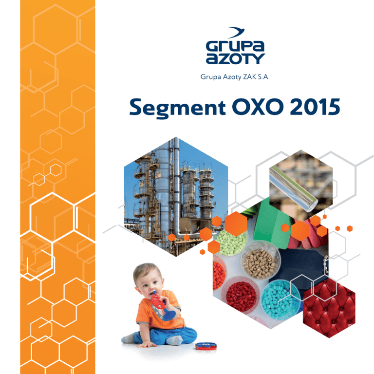 Wyniki skonsolidowane Grupa Azoty S.A. [MLN ZŁ] 2013 Przychody ze sprzedaży 9 821 9 898 EBIT 181 302 EBITDA* Zysk netto 2014 729 822 709 265 Wyniki skonsolidowane Grupa Azoty ZAK S.A. [MLN ZŁ] 2013 Przychody ze sprzedaży 2 076 2 056 EBIT 98 89 EBITDA 174 174 Zysk netto 85 78 2014 Udziały segmentu OXO w przychodach Grupy Azoty S.A. Udziały segmentu OXO w przychodach Grupy Azoty ZAK S.A. 46% 10% Misja / Wizja Misja segmentu OXO Zapewniamy komponenty chemiczne spełniając oczekiwania klientów. Wizja segmentu OXO Zostaniemy wiodącym graczem w swojej branży, a dla klientów będziemy firmą pierwszego wyboru. Uzyskamy wskaźnik wartości dodanej wyższy niż firmy naszego sektora, niezależnie od koniunktury. Cel strategiczny Wzrost sprzedaży i marży poprzez rozwój rynku, poszerzenie i pozycjonowanie portfela produktów Działania operacyjne Wprowadzenie do oferty sprzedażowej plastyfikatorów nowej generacji, Wydłużanie łańcuchów produktowych, Doskonalenie systemu obsługi klienta z wykorzystaniem innowacyjnych rozwiązań logistycznych, Ekspansja na nowe, perspektywiczne segmenty i rynki geograficzne, optymalizacja kosztów produkcji i magazynowania. Zdolności produkcyjne Alkohole OXO Plastyfikatory Udział w rynku UE Alkohole OXO razem: 225 tys. ton razem: 86 #2 w 2-EH tys. ton 12% 5. miejsce 2-Etyloheksanol 170 tys. ton (DEHT) w przeliczeniu na 2-EH i Butanole 50 tys. ton Udział w rynku UE Plastyfikatory #2 w DEHT Butanole 55 tys. ton Oxoplast Medica® Oxoplast® O (DEHP) Oxoplast® PH 5% (DPHP) 36 tys. ton 5. miejsce w przeliczeniu na DEHT, DINCH, DINP, DPHP Historia Oxoplast Dyrektor JB Oxoplast Ludzie segmentu OXO Aleksander Grymel Szef Biura Technologicznego Lech Janik Dyrektor Produkcji JB Oxoplast Bogusław Gaca Sekretarka Kierownik Wydziału Aldehydów Beata Bajkiewicz Paweł Polański Kierownik Wydziału Estrów Arkadiusz Karsznia Kierownik Wydziału WGS Andrzej Dorosz Kierownik Wydziału Alkoholi Dariusz Pietrzak Wiceprezes Zarządu Grupy Azoty Zakłady Azotowe Kędzierzyn S.A. Samodzielny referent ds. sprzedaży Dariusz Bednorz Waldemar Pawelczyk Specjalista ds. sprzedaży Anna Jamrozik Kierownik Działu Sprzedaży Rynek Europa Zachodnia i Świat Specjalista ds. sprzedaży Katarzyna Łukasik Adam Rogala Kierownik Działu Sprzedaży Rynek Krajowy i Europa Środkowo-Wschodnia Jolanta Kamys Dyrektor Handlowy JB Oxoplast Agnieszka Kurpińska Kierownik Działu Sprzedaży Rynek Europa Południowa i Świat Monika Urbańczyk Koordynator ds. Sprzedaży Samodzielny referent ds. sprzedaży Ludomira Trojnar Małgorzata Góreczna Specjalista ds. marketingu Rafał Bobko Samodzielny referent ds. sprzedaży Renata Pikuła Przewagi konkurencyjne Wysoka i powtarzalna jakość wytwarzanych wyrobów – parametry produktów dopasowane do indywidualnych potrzeb odbiorców. Sprawna i skuteczna logistyka wykorzystująca wszystkie dostępne środki transportu, zapewniająca realizację dostaw zgodnie z oczekiwaniami odbiorcy. Konkurencyjne warunki handlowe oferty dostosowane do aktualnej sytuacji rynkowej, uwzględniające specyfikę danego klienta i określonego sektora przetwórstwa. Długofalowa perspektywa współpracy oparta na partnerskich relacjach i poszanowaniu wzajemnych oczekiwań oraz potrzeb. Proces produkcji Aldehyd n-Masłowy Aldehyd Izomasłowy 2-Etyloheksanol Aldehydy Wytwórnia aldehydów masłowych Propylen n-Butanol Wytwórnia Alkoholi OXO Izobutanol Oktanol F Gaz syntezowy Wodór Alkohole OXO CH4 O2 H2 Wytwórnia gazu syntezowego i oczyszczania wodoru Wodór Wodór Oxoviflex TM PTA 2PH BKF Wytwórnia estrów Oxoplast Medica ® Oxoplast® O Oxoplast® PH Główne zastosowania Wykorzystanie Dodatek do PCW zwiększający elastyczność Produkcja powłok, wyrobów gumowych, klei i uszczelniaczy Budownictwo Motoryzacja Produkcja obuwia Kable i przewody Opakowania Produkty medyczne Plastyfikatory OxoviflexTM Oxoplast Medica® Oxoplast® O Oxoplast® PH Aldehydy Główne zastosowania Aldehyd n-Masłowy Aldehyd Izomasłowy Alkohole Oxo 2-Etyloheksanol n-Butanol Izobutanol Oktanol F Plastyfikatory Rozpuszczalniki Akrylany Octany Dodatki paliwowe Wykorzystanie Plastyfikatory Farby i lakiery Kleje Paliwa Instalacja Oxoviflex™ W środę 29. kwietnia 2015 roku Grupa Azoty ZAK S.A. oficjalnie oddała do użytku innowacyjną instalację, na której jest wytwarzany pierwszy polski plastyfikator nieftalanowy – Oxoviflex™. To odpowiedź na rosnące zainteresowanie rynku przetwórstwa PCW innowacyjnymi produktami. Dzięki najnowocześniejszej w tej części Europy instalacji do produkcji plastyfikatorów, nasza spółka będzie mogła produkować 50 tysięcy ton Oxoviflexu™ rocznie dzięki czemu nasza firma dołącza do czołówki europejskich producentów plastyfikatorów nieftalanowych. Oxoviflex™ jest produkowany w oparciu o technologię opracowaną wspólnie przez Grupę Azoty ZAK S.A. i Instytut Ciężkiej Syntezy Organicznej “Blachownia”. Zarówno plastyfikator jak i jego technologia zostały wyróżnione prestiżową nagrodą Polski Produkt Przyszłości (PARP). Dzięki unikalnemu procesowi produkcyjnemu i dedykowanej instalacji nasz nieftalanowy plastyfikator Oxoviflex™ jest produktem o wysokiej, powtarzalnej jakości i doskonałych parametrach użytkowych. Innowacyjne produkty Coraz wyższe standardy jakościowe odnośnie produktów oferowanych przez Grupę Azoty Zakłady Azotowe Kędzierzyn, oczekiwane zwłaszcza przez przetwórców tworzyw sztucznych, ale też i innych odbiorców, znajdują odzwierciedlenie w ofercie segmentu OXO. Nowe generacje innowacyjnych produktów estrowych, oferowane przede wszystkim jako plastyfikatory ale też i do innych zastosowań, coraz częściej działają jako dodatki „inteligentne”. Segment OXO przygotowuje gamę takich substancji, zgodnie z ostrymi normami europejskiego prawodawstwa chemicznego REACH, aby utrzymać swoją pozycję znaczącego ich producenta. W najbliższych kilku latach zaoferowane zostaną naszym 