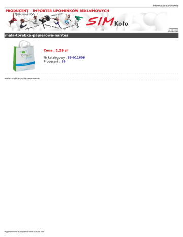 Informacje o produkcie Utworzono 07-03-2017 mala-torebka-papierowa-nantes Cena : 1,29 zł Nr katalogowy : S9-011606 Producent : S9 mala-torebka-papierowa-nantes Wygenerowano w programie www.oscGold.com