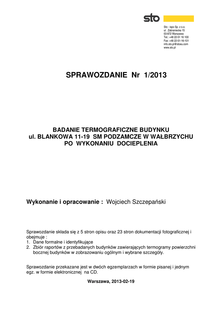 BADANIE TERMOGRAFICZNE BUDYNKU ul. BLANKOWA 11