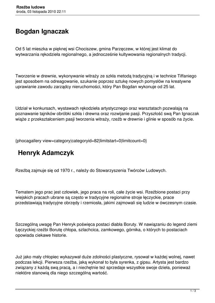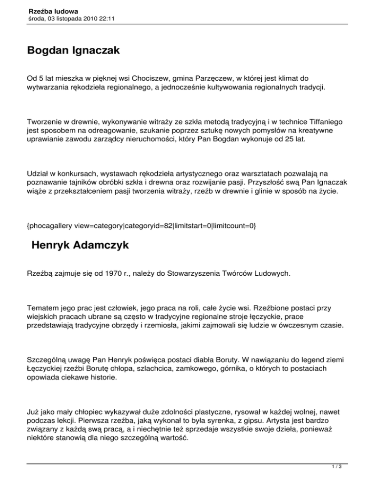 wytwarzania rękodzieła regionalnego, a jednocześnie kultywowania regionalnych tradycji.