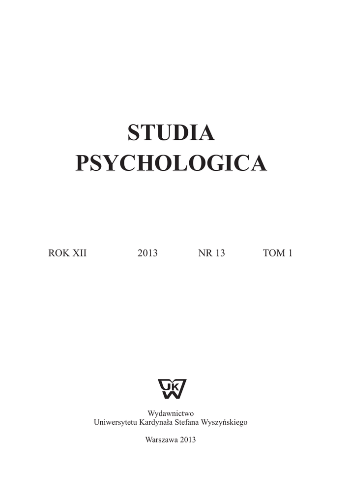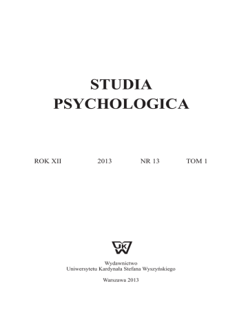 Pełny tekst - Studia Psychologica - Uniwersytet Kardynała Stefana
