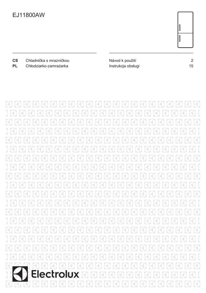 EJ11800AW CS PL Chladnička s mrazničkou Chłodziarko-zamrażarka Návod k použití Instrukcja obsługi 2 15 2 www.electrolux.com OBSAH 1. BEZPEČNOSTNÍ INFORMACE......................................................................... 3 2. BEZPEČNOSTNÍ POKYNY ...............................................................................4 3. PROVOZ.............................................................................................................6 4. DENNÍ POUŽÍVÁNÍ............................................................................................ 6 5. TIPY A RADY..................................................................................................... 7 6. ČIŠTĚNÍ A ÚDRŽBA.......................................................................................... 8 7. ODSTRAŇOVÁNÍ ZÁVAD................................................................................ 10 8. INSTALACE......................................................................................................13 9. TECHNICKÉ ÚDAJE........................................................................................ 14 MYSLÍME NA VÁS Děkujeme, že jste si zakoupili spotřebič značky Electrolux. Vybrali jste si produkt, se kterým jsou spjaty desítky let profesionálních zkušeností a inovací. Tento důmyslný a stylový spotřebič byl navržen s ohledem na jeho uživatele. Kdykoliv jej proto používáte, můžete se spolehnout, že pokaždé dosáhnete skvělých výsledků. Vítá Vás Electrolux. Navštivte naše stránky ohledně: Rady ohledně používání, brožury, poradce při potížích, servisních informací: www.electrolux.com/webselfservice Registrace vašeho spotřebiče, kterou získáte lepší servis: www.registerelectrolux.com Nákupu příslušenství, spotřebního materiálu a originálních náhradních dílů pro váš spotřebič: www.electrolux.com/shop PÉČE O ZÁKAZNÍKY A SERVIS Doporučujeme používat originální náhradní díly. Při kontaktu se servisním střediskem se ujistěte, že máte k dispozici následující údaje: Model, výrobní číslo (PNC), sériové číslo. Tyto informace jsou uvedeny na typovém štítku. Upozornění / Důležité bezpečnostní informace Všeobecné informace a rady Poznámky k ochraně životního prostředí Zmĕny vyhrazeny. ČESKY 1. 3 BEZPEČNOSTNÍ INFORMACE Tento návod si pečlivě přečtěte ještě před instalací spotřebiče a jeho prvním použitím. Výrobce nenese odpovědnost za žádný úraz ani škodu v důsledku nesprávné instalace nebo použití. Návod k použití vždy uchovávejte na bezpečném a přístupném místě pro jeho budoucí použití. 1.1 Bezpečnost dětí a postižených osob • • • • Tento spotřebič smí používat děti starší osmi let nebo osoby se sníženými fyzickými, smyslovými nebo duševními schopnostmi nebo osoby bez patřičných zkušeností a znalostí, pouze pokud tak činí pod dozorem nebo vedením, které zohledňuje bezpečný provoz spotřebiče, a pokud rozumí rizikům spojeným s provozem spotřebiče. Nenechte děti hrát si se spotřebičem. Čištění a uživatelskou údržbu spotřebiče by neměly provádět děti bez dozoru. Všechny obaly uschovejte z dosahu dětí a řádně je zlikvidujte. 1.2 Všeobecné bezpečnostní informace • • • • Tento spotřebič je určen pro použití v domácnosti a pro následující způsoby použití: – Ve farmářských domech, v kuchyňkách pro zaměstnance v obchodech, kancelářích a jiných pracovních prostředích – Pro zákazníky hotelů, motelů, penzionů a jiných ubytovacích zařízení Udržujte volně průchodné větrací otvory na povrchu spotřebiče nebo kolem vestavěného spotřebiče. K urychlení odmrazování nepoužívejte mechanické ani jiné pomocné prostředky, které nejsou doporučeny výrobcem. Nepoškozujte chladicí okruh. 4 www.electrolux.com • • • • • V prostoru chladicích spotřebičů nepoužívejte jiné elektrické přístroje, než typy schválené k tomuto účelu výrobcem. K čištění spotřebiče nepoužívejte proud vody nebo páru. Vyčistěte spotřebič vlhkým měkkým hadrem. Používejte pouze neutrální mycí prostředky. Nepoužívejte prostředky s drsnými částicemi, drátěnky, rozpouštědla nebo kovové předměty. V tomto spotřebiči neuchovávejte výbušné směsi, jako např. aerosolové spreje s hořlavým hnacím plynem. Jestliže je poškozený přívodní kabel, smí ho vyměnit pouze výrobce, autorizované servisní středisko nebo osoba s podobnou příslušnou kvalifikací, jinak by mohlo dojít k úrazu. 2. BEZPEČNOSTNÍ POKYNY 2.1 Instalace VAROVÁNÍ! Tento spotřebič smí instalovat jen kvalifikovaná osoba. • • • • • • • • • Odstraňte všechny obaly nebo přepravní šrouby. Poškozený spotřebič neinstalujte ani nepoužívejte. Řiďte se pokyny k instalaci dodanými spolu s tímto spotřebičem. Při přemisťování spotřebiče buďte vždy opatrní, protože je těžký. Vždy používejte ochranné rukavice a uzavřenou obuv. Přesvědčte se, že vzduch může okolo spotřebiče volně proudit. Počkejte alespoň čtyři hodiny, než spotřebič připojíte k napájení. Olej tak může natéct zpět do kompresoru. Neinstalujte spotřebič v blízkosti topidel, sporáků, trub či varných desek. Zadní stěna spotřebiče musí být umístěna směrem ke zdi. Neinstalujte spotřebič tam, kde by se dostal do přímého slunečního světla. • • Neinstalujte spotřebič v příliš vlhkých či příliš chladných místech, jako jsou přístavby, garáže či vinné sklepy. Při přemisťování spotřebiče jej nadzdvihněte za přední okraj, abyste zabránili poškrábání podlahy. 2.2 Připojení k elektrické síti VAROVÁNÍ! Hrozí nebezpečí požáru nebo úrazu elektrickým proudem. • • • • • Spotřeb