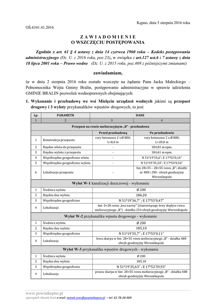 OŚ.6341.41.2016 Zawiadomienie o wszczęciu