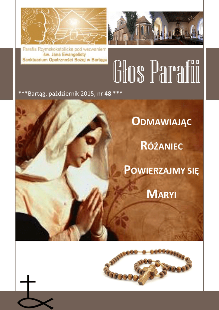 Głos Parafii ***Bartąg, październik 2015, nr 48 *** ODMAWIAJĄC RÓŻANIEC POWIERZAJMY SIĘ MARYI * Głos Parafii Bartąg, październik 2015, nr 48 NA STRONACH ŚWIĘTY WSPOMINANY W PAŹDZIERNIKU SKÓRA, WŁOSY I PAZNOKCIE – wpływ diety na naszą urodę Bł. Zofia Truszkowska – jej pragnienie oddania się Bogu na wyłączną służbę w życiu zakonnym, które dojrzało w 1848r., nie zrealizowało się z powodu zdecydowanego sprzeciwu rodziców, ale ugruntowane było głęboką pobożnością i umiłowaniem modlitwy oraz niezwykłą wrażliwością na nędzę innych, a cechy te wyniosła z domu rodzinnego. Uroda w dużej mierze zależy od diety. Zamiast wydawać fortunę na suplementy, po prostu zmień codzienny jadłospis. Nie powinno w nim zabraknąć produktów zawierających witaminy i minerały. Zdrowa, zrównoważona i urozmaicona dieta sprawi, że nasze włosy będą lśniące i gęste, a skóra promienna i gładka. Poza tym, kilka nowych przepisów. 3 11 CZYTAJ Z UŚMIECHEM JAK POLSKA STAŁA SIĘ KRÓLESTWEM 14 października – to Dzień Edukacji Narodowej. W dzisiejszym numerze uśmiechamy się czytając żarty „ze szkoły wzięte”. Oczywiście również ciąg dalszy zmagań dziewczyny XL. Właściwie trudno rozpoznać, czy L, XL, czy…może M? Najważniejsze, jak autorka się czuje w swoim ciele. 6 Bolesław Chrobry to władca wyjątkowo zasłużony. Nie tylko ochronił Polskę przed niemieckimi najazdami, ale też sięgnął po koronę królewską. Fakty dotyczące koronacji giną jednak w mrokach dziejów… W tym numerze autor nie pozwala nam jeszcze bardzie oddalać czasów, kiedy Polska stała się królestwem. ZADANIE DLA NAJMŁODSZYCH I NIECO STARSZYCH Dla najmłodszych - TAK – kolorowanka. Ciekawe z której pory roku? 15 GŁOSIK ŻYWEGO RÓŻAŃCA Różaniec jest modlitwą pokoju, także ze względu na owoce miłości miłosiernej, jakie rodzi. Jeśli odmawia się go właściwie, jako modlitwę medytacyjną, to różaniec, pomagając spotkać się z Chrystusem w Jego misteriach, musi również ukazywać oblicze Chrystusa w braciach, zwłaszcza tych najbardziej cierpiących. 17 Dla zagadka – dzisiaj „starszaki” mogą się dowiedzieć, jak Bóg odpowiedział na modlitwy Jozuego o pomoc podczas wielkiej bitwy przeciwko pięciu królom Kanaanu. 9 2 Głos Parafii Bartąg, październik 2015, nr 48 wspominana w 10 październik - Bł. Zofia Truszkowska (1825 - 1899) Zofia Truszkowska (w Zgromadzeniu Maria Angela) urodziła się 16 maja 1825 roku w Kaliszu jako najstarsza spośród siedmiorga dzieci Józefa, urzędnika w sądzie dla nieletnich i Józefy z Rudzińskich. Otrzymała staranne wychowanie w domu, a następnie na pensji żeńskiej w Warszawie, dokąd rodzina przeniosła się w 1837 r. Z powodu choroby nie ukończyła pensji, a zdrowotny roczny pobyt w Szwajcarii z nauczycielką wzmocnił jej siły fizyczne i ubogacił ją duchowo. Po powrocie oddawała się nauczaniu rodzeństwa i uzupełniała własną edukację w domu. Jej pragnienie oddania się Bogu na wyłączną służbę w życiu zakonnym, które dojrzało w 1848r., nie zrealizowało się wtedy z powodu zdecydowanego sprzeciwu rodziców, a ujawniona wkrótce potem ciężka choroba ojca przyczyniła się do odsunięcia tych planów w bliżej nieokreśloną przyszłość. Jej postawę tego okresu cechowała głęboka pobożność i umiłowanie modlitwy oraz niezwykła wrażliwość na nędzę innych. Cechy te wyniosła z domu rodzinnego i pogłębiła przy pomocy kierownika duchowego o. Augustyna Brzężkiewicza, augustianina. Zofia była zawsze otwarta na sprawy Boga i ludzi. Wielkim jej pragnieniem było zawsze poznawanie Bożej woli i natychmiastowe wprowadzanie jej w czyn. Nie potrzebowała zachęty, by napotkanym ubogim przychodzić z pomocą, a gdy wznowiono w Warszawie Bractwo św. Wincentego a'Paulo, wkrótce stała się jedną z najaktywniejszych jego członkiń. Z pomocą hr. Gabrieli Wrotnowskiej, członkini Bractwa, zorganizowała schronisko dla kilku bezdomnych sierot i staruszek. W pracy pomagała jej kuzynka Klotylda Ciechanowska. Ich działalność w schronisku zbiegła się z początkami reformy tercjarstwa franciszkańskiego przy kościele kapucynów w Warszawie, wprowadzanej na zlecenie o. Beniamina Szymańskiego, ówczesnego prowincjała. Również kazania głoszone przez młodego, gorliwego kapucyna bł. Honorata Koźmińskiego, ściągały wielu mieszkańców Stolicy. Przychodziły na nie także Zofia i Klotylda. Obie przyjęły kierownictwo duchowne bł. Honorata i wstąpiły w szeregi tercjarstwa w maju 1855r., a przez akt przyrzeczenia, złożony przed obrazem Matki Bożej Częstochowskiej 21 listopada 1855r. poświęciły się 3 Głos Parafii Bartąg, październik 2015, nr 48 zupełnie Bogu oraz rozpoczętemu przez Zofię dziełu. Data ta jest uważana za początek Zgromadzenia Sióstr Felicjanek. W Zgromadzeniu Matka Angela od początku pełniła rolę matki i wychowawczyni sióstr dla przyszłych zadań, wyzwalając w nich gotowość na bezgraniczne poświęcenie w służbie ludowi Bożemu. Posiadała dar życzliwego i realnego spojrzenia na istniejącą rzeczywistość i napotykane problemy. Umiała szukać, radzić się innych, a przede wszystkim ufać całkowicie Bogu i wiernie wypełniać rozpoznaną Jego wolę. Niosła pomoc i pociechę innym, mimo iż sama szła krzyżową drogą. Bogactwo wpływu duchowego Matki ujawniają jej listy do sióstr. Widać w nich bł. Marię Angelę jako matkę wymagającą i konsekwentną, a zarazem zatroskaną o dobro swych duchowych córek, o ich wierność Bogu i podjętym zobowiązaniom. Nie inne są też jej listy pisane do sióstr pracujących w Ameryce czy na odległych placówkach Zgromadzenia. Przebija z tych listów troska o drugiego człowieka, o dobro tych, wśród których siostry pracują, o ich dobro materialne i przede wszystkim duchowe, a wszystkie sprawy apostolatów, prowadzonych przez swe duchowe córki, wspi
