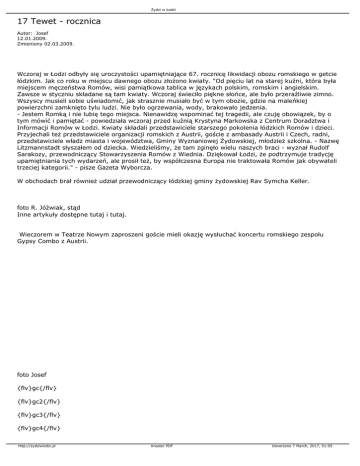 upamiętniania tych wydarzeń, ale prosił też, by współczesna Europa nie traktowała Romów jak obywateli