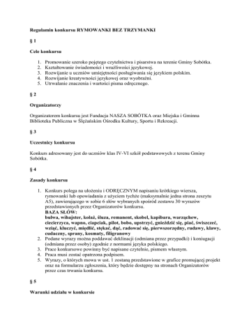 Regulamin konkursu RYMOWANKI BEZ TRZYMANKI § 1 Cele
