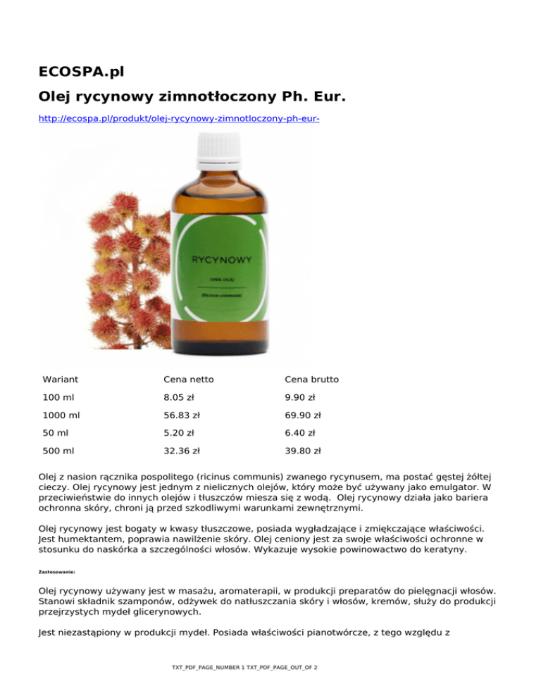 ECOSPA.pl Olej rycynowy zimnotłoczony Ph. Eur.