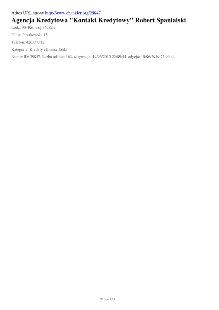 Agencja Kredytowa "Kontakt Kredytowy" Robert Spanialski, Lodz