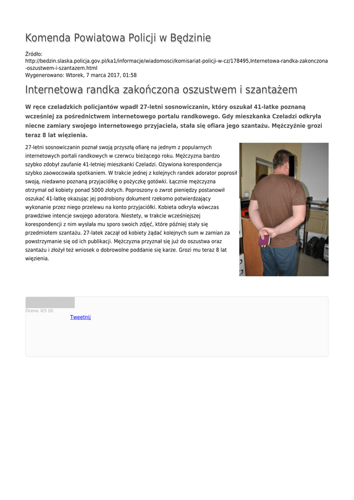 Komenda Powiatowa Policji w Będzinie Internetowa randka