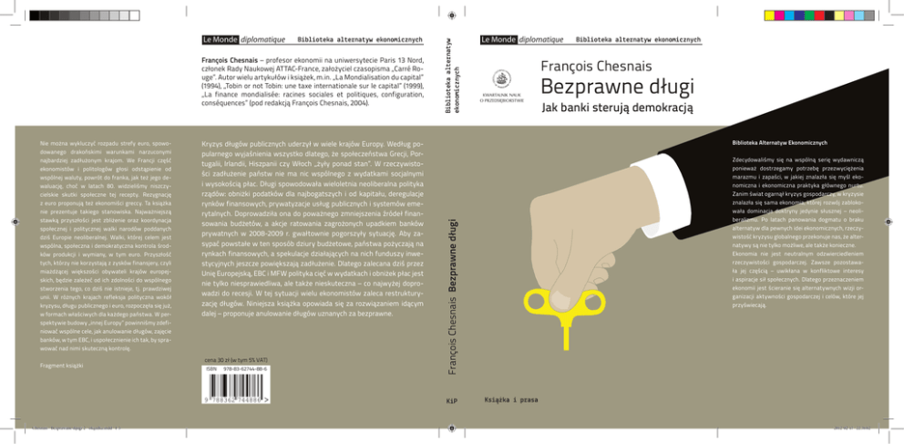 François Chesnais – profesor ekonomii na uniwersytecie Paris 13 Nord, członek Rady Naukowej ATTAC-France, założyciel czasopisma „Carré Rouge”. Autor wielu artykułów i książek, m.in. „La Mondialisation du capital” (1994), „Tobin or not Tobin: une taxe internationale sur le capital” (1999), „La finance mondialisée: racines sociales et politiques, configuration, conséquences” (pod redakcją François Chesnais, 2004). Nie można wykluczyć rozpadu strefy euro, spowodowanego drakońskimi warunkami narzuconymi najbardziej zadłużonym krajom. We Francji część ekonomistów i politologów głosi odstąpienie od wspólnej waluty, powrót do franka, jak też jego dewaluację, choć w latach 80. widzieliśmy niszczycielskie skutki społeczne tej recepty. Rezygnację z euro proponują też ekonomiści greccy. Ta książka nie prezentuje takiego stanowiska. Najważniejszą stawką przyszłości jest zbliżenie oraz koordynacja społecznej i politycznej walki narodów poddanych dziś Europie neoliberalnej. Walki, której celem jest wspólna, społeczna i demokratyczna kontrola środków produkcji i wymiany, w tym euro. Przyszłość tych, którzy nie korzystają z zysków finansjery, czyli miażdżącej większości obywateli krajów europejskich, będzie zależeć od ich zdolności do wspólnego stworzenia tego, co dziś nie istnieje, tj. prawdziwej unii. W różnych krajach refleksja polityczna wokół kryzysu, długu publicznego i euro, rozpoczęła się już, w formach właściwych dla każdego państwa. W perspektywie budowy „innej Europy” powinniśmy zdefiniować wspólne cele, jak anulowanie długów, zajęcie banków, w tym EBC, i uspołecznienie ich tak, by sprawować nad nimi skuteczną kontrolę. Kryzys długów publicznych uderzył w wiele krajów Europy. Według popularnego wyjaśnienia wszystko dlatego, że społeczeństwa Grecji, Portugalii, Irlandii, Hiszpanii czy Włoch „żyły ponad stan”. W rzeczywistości zadłużenie państw nie ma nic wspólnego z wydatkami socjalnymi i wysokością płac. Długi spowodowała wieloletnia neoliberalna polityka rządów: obniżki podatków dla najbogatszych i od kapitału, deregulacje rynków finansowych, prywatyzacje usług publicznych i systemów emerytalnych. Doprowadziła ona do poważnego zmniejszenia źródeł finansowania budżetów, a akcje ratowania zagrożonych upadkiem banków prywatnych w 2008-2009 r. gwałtownie pogorszyły sytuację. Aby zasypać powstałe w ten sposób dziury budżetowe, państwa pożyczają na rynkach finansowych, a spekulacje działających na nich funduszy inwestycyjnych jeszcze powiększają zadłużenie. Dlatego zalecana dziś przez Unię Europejską, EBC i MFW polityka cięć w wydatkach i obniżek płac jest nie tylko niesprawiedliwa, ale także nieskuteczna – co najwyżej doprowadzi do recesji. W tej sytuacji wielu ekonomistów zaleca restrukturyzację długów. Niniejsza książka opowiada się za rozwiązaniem idącym dalej – proponuje anulowanie długów uznanych za bezprawne. ISBN 978-83-62744-88-6 Fragment książki cena 30 zł (w tym 5% VAT) ISBN 978-83-62744-88-6 9 788362 744886 Chesnais - Bezprawane dąugi 2 - okąadka.indd 1-5 Biblioteka alternatyw ekonomicznych Biblioteka alternatyw ekonomicznych Le Monde diplomatique Biblioteka alternatyw ekonomicznych François Chesnais Bezprawne długi Jak banki sterują demokracją Biblioteka Alternatyw Ekonomicznych Zdecydowaliśmy się na wspólną serię wydawniczą ponieważ dostrzegamy potrzebę przezwyciężenia marazmu i zapaści, w jakiej znalazła się myśl ekonomiczna i ekonomiczna praktyka głównego nurtu. Zanim świat ogarnął kryzys gospodarczy, w kryzysie znalazła się sama ekonomia, której rozwój zablokowała dominacja doktryny jedynie słusznej – neoliberalizmu. Po latach panowania dogmatu o braku alternatyw dla pewnych idei ekonomicznych, rzeczywistość kryzysu globalnego przekonuje nas, że alternatywy są nie tylko możliwe, ale także konieczne. Ekonomia nie jest neutralnym odzwierciedleniem rzeczywistości gospodarczej. Zawsze pozostawała jej częścią – uwikłana w konfliktowe interesy i aspiracje sił społecznych. Dlatego przeznaczeniem ekonomii jest ścieranie się alternatywnych wizji organizacji aktywności gospodarczej i celów, które jej przyświecają. François Chesnais Bezprawne długi Le Monde diplomatique poleca Le Monde diplomatique KiP Książka i prasa 2012-02-17 22:38:02