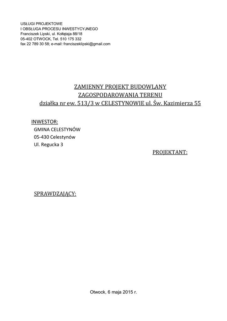 ZAMIENNY PROJEKT BUDOWLANY ZAGOSPODAROWANIA