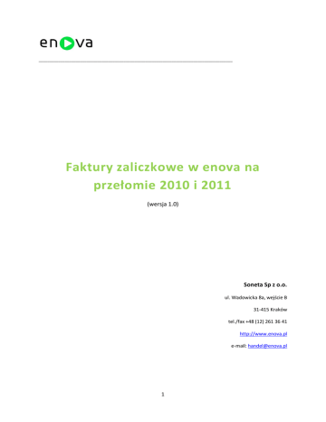 Faktury zaliczkowe w enova na przełomie 2010 i 2011