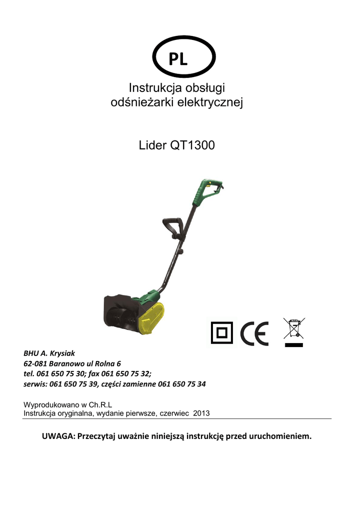 Instrukcja obsługi odśnieżarki elektrycznej Lider QT1300