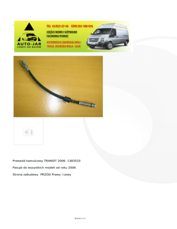 Przewód hamulcowy TRANSIT 2006- 1383533 Pasuje do wszystkich modeli od roku 2006 Strona zabudowy PRZÓD Prawy i Lewy Strona 1 z 1