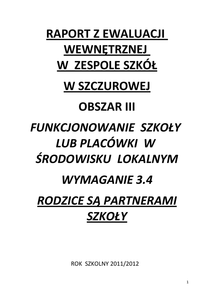 raport z ewaluacji wewnętrznej w zespole szkół w szczurowej