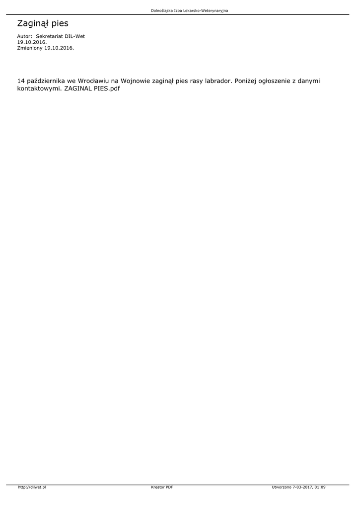 Zaginął pies - Dolnośląska Izba Lekarsko