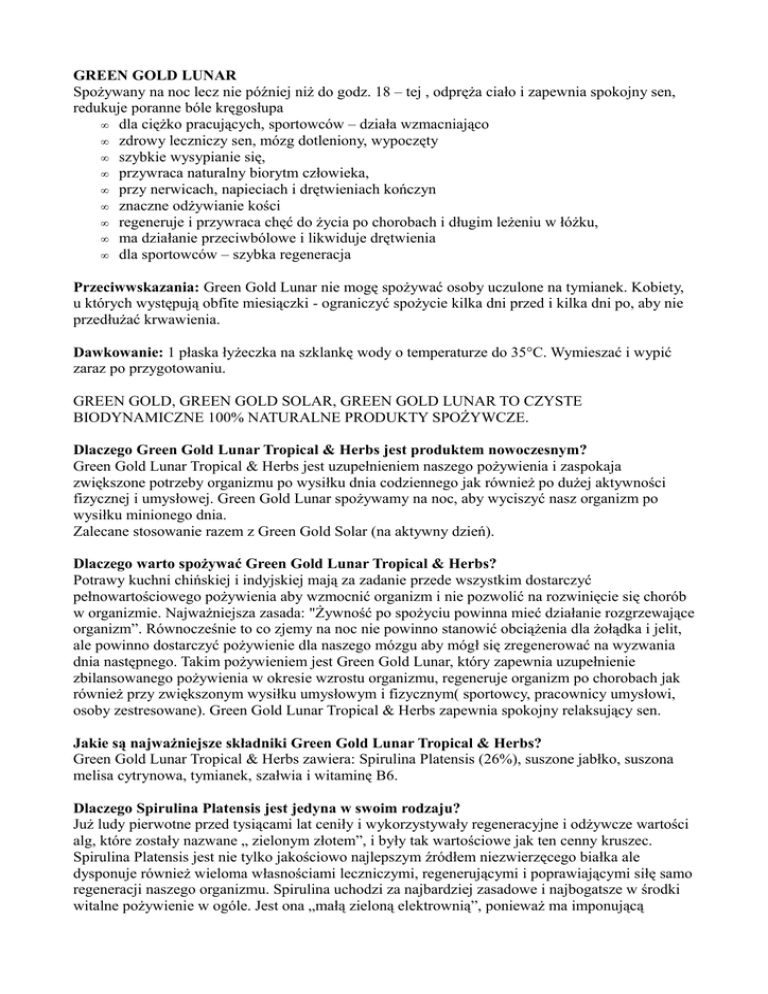GREEN GOLD LUNAR Spożywany na noc lecz nie później niż do