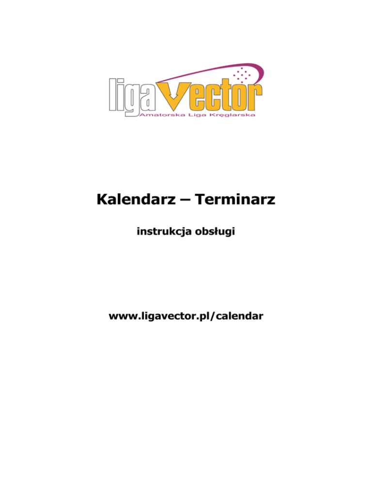 Kalendarz – Terminarz instrukcja obsługi www.ligavector.pl/calendar Od jakiegoś czasu na naszej stronie dostępny jest terminarz rozgrywek w formie Google Calendar. Poniżej postaram się przedstawić podstawową funkcjonalność tego kalendarza oraz sposób jego obsługi. 1. Jak zacząć? Najprościej kliknąć w baner na głównej stronie: albo wpisując adres: www.ligavector.pl/calendar 2. Widoki Kaledarz można przeglądać korzystając z 3 widoków: - miesięczny - tygodniowy - dzienny 3. Różne kalendarze W ramach kalendarza można przeglądać kalendarze I, III, III ligi oraz kalendarz ogólny Ligi Vector (z informacjami na temat turniejów u nas, wyjazdowych, imprez itd) Poszczególne widoki możemy sobie „włączyć” lub „wyłączyć” klikając w mały trójkącik w górnym prawym rogu: W ten sposób widzimy w kalendarzu jedynie te terminy, które nas interesują. 4. Przeglądanie wpisów Jeśli chcemy zobaczyć szczegóły danego wpisu, klikamy w ten wpis w kalendarzu: a następnie możemy kliknąć: „więcej szczegółów” by zobaczyć dalsze szczegóły danego wpisu.