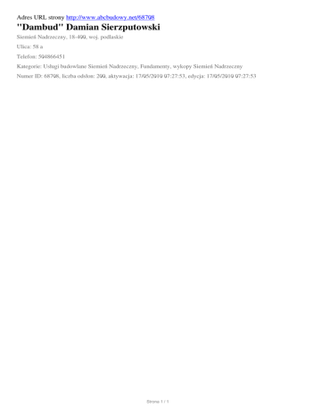 "Dambud" Damian Sierzputowski, Siemien Nadrzeczny, 58 a
