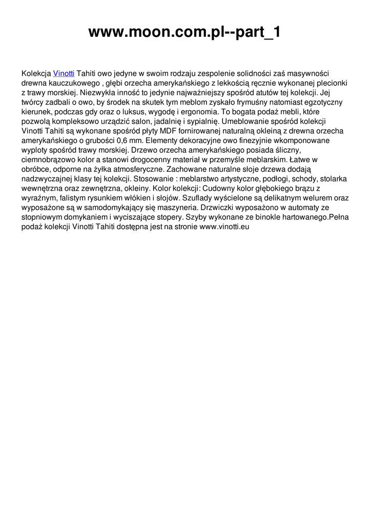 www.moon.com.pl--part_1 Kolekcja Vinotti Tahiti owo jedyne w swoim rodzaju zespolenie solidności zaś masywności drewna kauczukowego , głębi orzecha amerykańskiego z lekkością ręcznie wykonanej plecionki z trawy morskiej. Niezwykła inność to jedynie najważniejszy spośród atutów tej kolekcji. Jej twórcy zadbali o owo, by środek na skutek tym meblom zyskało frymuśny natomiast egzotyczny kierunek, podczas gdy oraz o luksus, wygodę i ergonomia. To bogata podaż mebli, które pozwolą kompleksowo urządzić salon, jadalnię i sypialnię. Umeblowanie spośród kolekcji Vinotti Tahiti są wykonane spośród płyty MDF fornirowanej naturalną okleiną z drewna orzecha amerykańskiego o grubości 0,6 mm. Elementy dekoracyjne owo finezyjnie wkomponowane wyploty spośród trawy morskiej. Drzewo orzecha amerykańskiego posiada śliczny, ciemnobrązowo kolor a stanowi drogocenny materiał w przemyśle meblarskim. Łatwe w obróbce, odporne na żyłka atmosferyczne. Zachowane naturalne słoje drzewa dodają nadzwyczajnej klasy tej kolekcji. Stosowanie : meblarstwo artystyczne, podłogi, schody, stolarka wewnętrzna oraz zewnętrzna, okleiny. Kolor kolekcji: Cudowny kolor głębokiego brązu z wyraźnym, falistym rysunkiem włókien i słojów. Szuflady wyścielone są delikatnym welurem oraz wyposażone są w samodomykający się maszyneria. Drzwiczki wyposażono w automaty ze stopniowym domykaniem i wyciszające stopery. Szyby wykonane ze binokle hartowanego.Pełna podaż kolekcji Vinotti Tahiti dostępna jest na stronie www.vinotti.eu Album PACIFIC owo najnowsza egzotyczna impuls w ofercie salonów VINOTTI.vinotti Inspirowana jest tęsknota Europejczyków w ciągu dalekimi podróżami a orientem. Łączy w sobie europejski pragmatyzm natomiast egzotyczny design.Została stworzona spośród myślą o klientach, lubiących naturalność a prostotę, doceniających egzotyczny natura mebli, które wnoszą radośnie a swoisty nastrój do naszych wnętrz. Nasi projektanci zadbali nie tylko o to, tak aby w kiedy najlepszy podejście wyeksponować unikalną strukturę naturalnego surowca a zachować egzotyczny istota kolekcji, pomimo tego równolegle zapewnić funkcjonalność, wygodę i gigantyczny okazałość użytkowania. Łagodna, szczerze eteryczna sznur elektryczny brył nienagannie współgra z solidną konstrukcją. Całości dopełniają ręcznie kute wykończenia a kochający brunatny zabarwienie, nadające kolekcji niepowtarzalnego charakteru.Meble spośród tej kolekcji wykonane są spośród naturalnego drewna palmowego, wyróżniającego się unikalną strukturą. W wielu tropikalnych krajach palma kokosowa jest uważana w ciągu święte ksylem, które zostało nie bez przyczyny zaprojektowane za sprawą Boga, żeby zaspokajało wszelkie podstawowe potrzeby człowieka. Zasoby ludzkie potrafią posłużyć się niemalże suma, czym obdarza ich to ksylem Nie istnieje na świecie inna flora, która miałaby równie mnogość użytecznych zastosowań kiedy palma kokosowa. W języku malezyjskim nazywana jest „pokok seriru guna” alias drzewem o tysiącu zastosowań. Jest zatem potrzeba następnych, aby osoby wiedzieli o tych niezliczonych produktach.agencja reklamowa wrocław Tutaj jest wyobrażenie porządnej autopromocji. Większość osób nie posiadają pojęcia o wielu porządnych, nowatorskich wytworach. Bowiem spółka doszła do obrotu w zamiarze sprzedaży swoich produktów, spoczywa na samej firmie zezwolić na to, że coraz więcej osób wie o ich wytworze. To dzięki broszurce, można to zrobić. Team Marcova Polska powstała w 2005 roku.artykuły biurowe Na zaczątku przeważającym naszym produktem istniały zgodne tusze i kasetki z tonerem do drukarek. W taryfie egzystowały również wyroby prawdziwe takich firm jak HP, Samsung, Canon, Oki, Lexmark, Konica-Minolta, Nashuatec, Kycocera, IBM. W 2006 roku rozluźniliśmy niewielką wytwórczość kaset zgodnych. Skupieni egzystowaliśmy nie na miary szkatułek z tonerem, a na wyśmienitej własności i wielkim wachlarzu produktów. Produkcja systematycznie się podnosiła. Nawiązaliśmy liczne kontakty z przedsiębiorcami komponentów z całkowitej europy choćby takimi jak Uninet, Static Controll czy polski Biuromax. Zapewniamy się u nich w toner bardzo wielkiej cechy oraz odmienne produkty wymagane do obowiązującej eksploatacji naszych szkatułek. Także w 2006 roku udało się pobudzić zawodowy i fachowy serwis drukarek, kopiarek, faksów i niszczarek. Serwis, który znakomicie radzi sobie zarówno z drobnymi usterkami jak i bardzo godnymi poprawami Kraje ekwipunku. Mając osobisty serwis drukarek, możemy zagwarantować Krajowi ciągłość wydruków, niepośrednio czy użyją Królestwo tonerów, tuszy lub tasiemki naszej, czy drugiej wytwórczości. Mając osobisty serwis drukarek jesteśmy w obszerni rozliczani za Kraje drukarki. W 2008 roku stworzyliśmy dla Państwa serwis komputerowy. Serwis ma za zadanie rozładować Królestwa od zmagań z pecetami, oprogramowaniem takim jak Windows, Subiekt, WF-Mag, Office. W swojej ofercie posiadamy także wielką paletę oprogramowania takiego jak Esset NOD, WF-MAG, SUBIEKT GT. Jest to teoria uczenia się przez wybitny paradygmat konstruktywistyczny czy też teorię poznania społecznego.liceum uzupełniające dla dorosłych warszawa Jeśli jesteśmy zainteresowani tym, co tak naprawdę nas motywuje, to szkoły policealne warszawa będzie ożywiać nas, a my będziemy spełnieni chociaż faktycznie wcale nie potrzebujemy motywacji. Według tego i innych odmiennych teorii motywacji szkoły policealne warszawa może się opierać na pryncypialnej potrzebie, żeby zmniejszyć ból fizyczny i zwrócić się ku maksymalizacji przyjemności, lub może przykrywać szczególne potrzeby, takie jak pożywienie i relaks albo obrać korzystny cel, hobby, zamiar, stan skupienia, perfekcyjny, bowiem może to być przypisane do mniej wyraźnych powodów, takich jak altruiz