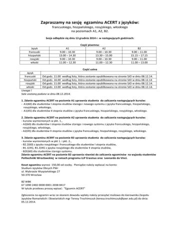 Egzamin ACERT z języków - Politechnika Wrocławska