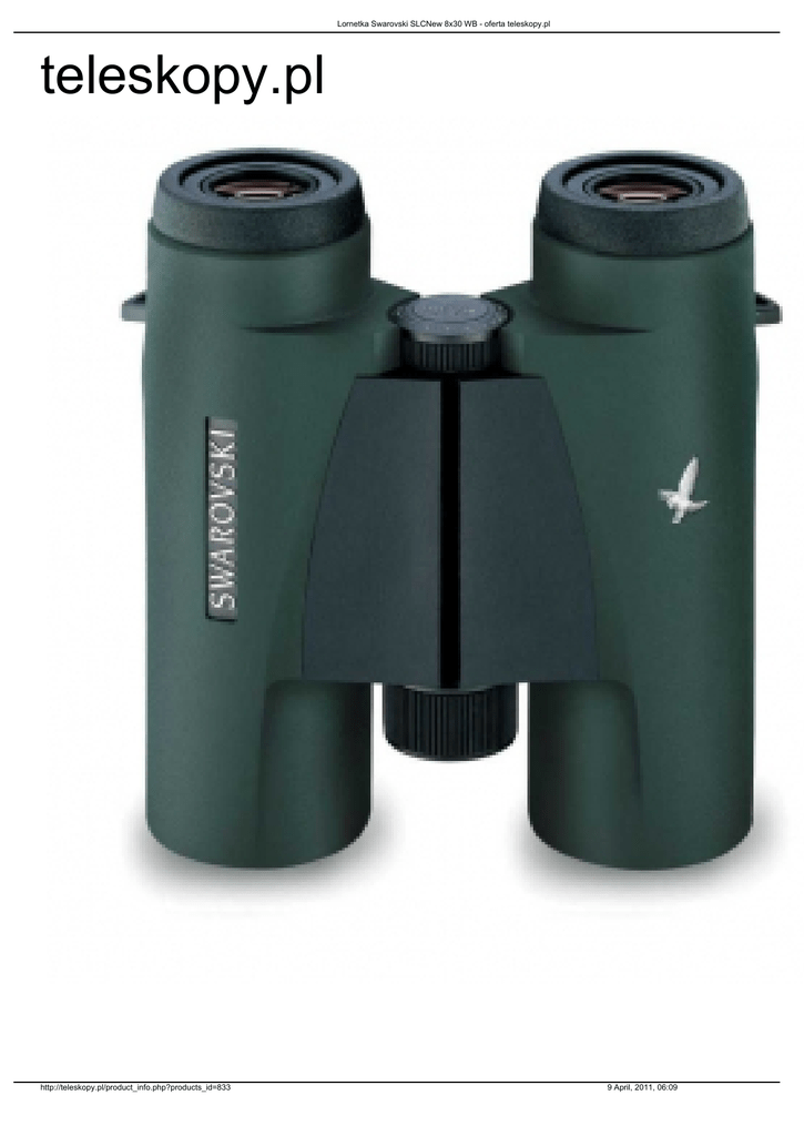 Lornetka Swarovski SLCNew 8x30 WB - oferta teleskopy.pl teleskopy.pl http://teleskopy.pl/product_info.php?products_id=833 9 April, 2011, 06:09 Lornetka Swarovski SLCNew 8x30 WB - oferta teleskopy.pl NiesBychanie wszechstronne lornetki Swarovski serii SLC New to jedne z najbardziej po|danych lornetek z wy|szej póBki. W najnowszej odsBonie linii SLC jeszcze bardziej zwikszono ergonomi u|ytkowania. Lornetki te nadaj si do praktycznie wszystkich zastosowaD w ka|dych warunkach, s wodoodporne i objte 10-letni gwarancj producenta. Zastosowania krajobrazy ptaki my[listwo samoloty astronomia http://teleskopy.pl/product_info.php?products_id=833 9 April, 2011, 06:09 Lornetka Swarovski SLCNew 8x30 WB - oferta teleskopy.pl SLCnew8x30 WBSLCnew7x42 BSLCnew10x42 WBSLCnew7x50 BSLCnew8x50 BSLCnew10x50 WBSLCnew8x56 BSLCnew15x56 WBPowikszenie8x7x10x7x8x10x8x15xZrednica obiektywów (mm)3042425050505656Zrednica obiektywów (cale)1,181,651,651,971,971,972,22,2Zrednica zrenicy wyj[ciowej (mm)3,864,27,16,3573,7Zrednica zrenicy wyj[ciowej (cale)0,150,240,170,280,250,20,280,15Odsunicie zrenicy wyj[ciowej (mm)1519142321172213Odsunicie zrenicy wyj[ciowej (cale)0,590,750,550,910,830,670,870,51Rzeczywiste pole widzenia (m/100 m)13614011012412311211577Rzeczywiste pole widzenia (ft/1000 yds)408420330372369336345231Rzeczywiste pole widzenia (degree)7,886,37,176,46,64,4Widome pole widzenia (degree)6055625056635264Minimalna odlegBo[ ostrzenia (m)44466598Minimalna odlegBo[ ostrzenia (ft)1313132020163026Korekcja dioptryczna ostro[ci (dpt)+-5+-3+5+-3+-3+-3+-2,5+-5Regulacja rozstawu zrenic (mm)56-7256-7256-7257-7257-7257-7259-7259-72Regulacja rozstawu zrenic (cale)2,2-2,832,2-2,832,2-2,832,24-2,832,24-2,832,24-2,832,32-2,832,32-2,83Sprawno[ zmierzchowa (DIN 58388)1617211920222129DBugo[ (mm)141164147200198196215215DBugo[ (cale)5,556,465,797,877,87,728,478,46Szeroko[ (mm)110122122126126126128128Szeroko[ (cale)4,334,84,84,964,964,965,045,04Wysoko[ (mm)6471716969697171Wysoko[ (cale)2,522,82,82,722,722,722,82,8Waga (g)59095087011501150116012401290Waga (oz)20,833,530,740,640,640,943,745,5Kolorzielonyzielonyzielonyzielonyzielonyzielonyzielonyzielony Inne cechy / parametry • Zakres temperatur pracy: od -20 do +55°C • Zakres temperatur przechowywania: od -30 do +70°C • Wodoszczelno[: do gBboko[ci 4m (wypeBniona azotem) Gwarancja 10 lat gwarancji http://teleskopy.pl/product_info.php?products_id=833 9 April, 2011, 06:09