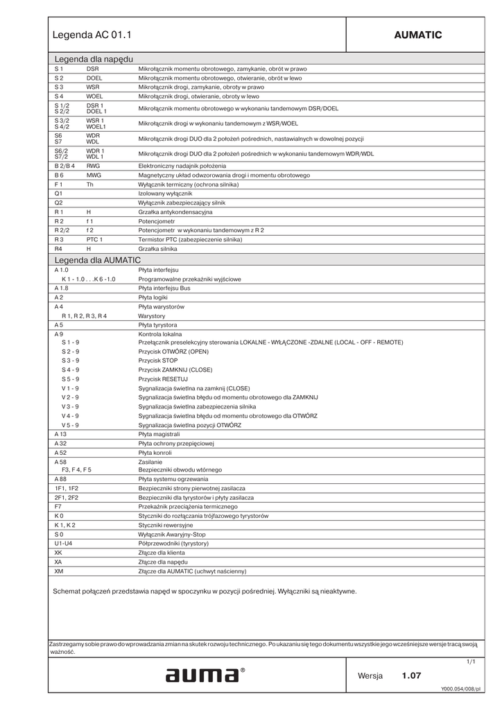 Legenda dla napędu Legenda dla AUMATIC Wersja 1.07