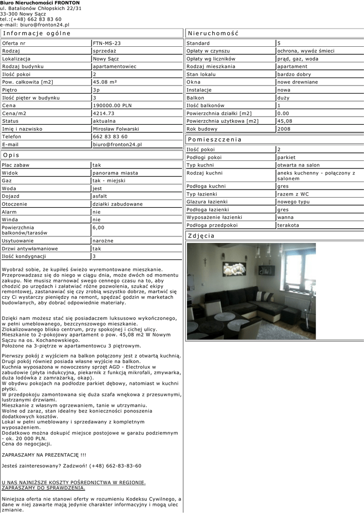 Drukuj PDF - Biuro Nieruchomości FRONTON