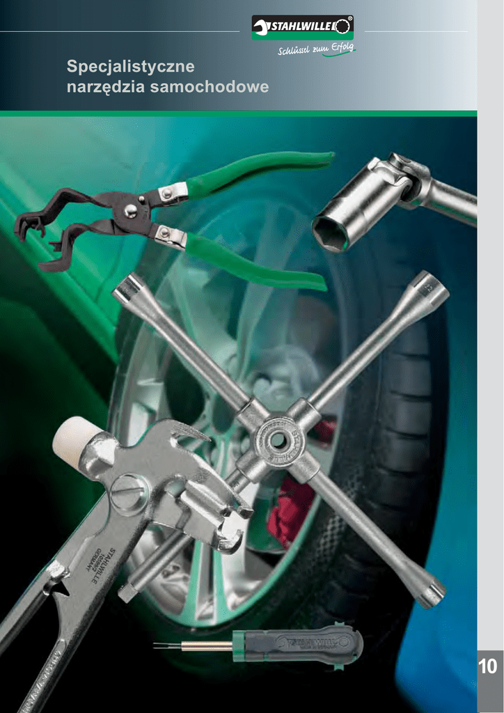 Specjalistyczne narzędzia samochodowe 1 10 5 STAHLWILLE Narzędzia specjalistyczne dla motoryzacji We współpracy z wiodącymi producentami branży motoryzacyjnej STAHLWILLE ciągle rozwija asortyment narzędzi specjalistycznych i ich zestawów pod określone marki samochodów. Wprowadzane innowacje oraz ciągłe doskonalenie naszych produktów mających zastosowanie zarówno w procesie produkcyjnym jak i w warsztacie sprawiają, iż nasze narzędzia dotrzymują kroku najnowszym osiągnięciom techniki w przemyśle. Perfekcja w organizacji miejsca pracy: Odpowiednio dobrane zestawy narzędzi STAHLWILLE do każdej pracy Odpowiednio dobrane zestawy narzędzi w wózku warsztatowym lub skrzyni narzędziowej zapewniają efektywność w miejscu pracy. W pracach warsztatowych jak i bezpośrednio w produkcji – wszędzie tam Użytkownicy doceniają korzyści użytkowania narzędzi markowych i odpowiednio zaprojektowanych do każdego zadania a zarazem gwarantujących bezpieczeństwo i oszczędność czasu. Rozwiązanie problemu: Specjalistyczne szczypce STAHLWILLE Tylko Użytkownicy wiedzą jak często przychodzi im borykać się z pracami serwisowymi na gorącym silniku i na jego elementach często skorodowanych albo trudno dostępnych czy mocno osadzonych. Jednym z takich problemów jest wymiana gorących świec. Specjalistyczne szczypce produkcji STAHLWILLE do kapturków świec żarowych znacznie ułatwiają pracę, szczególnie gdy silnik jest nadal ciepły. 278 Lepiej chronić niż naprawiać Trudno wyobrazić sobie pracę w warsztacie samochodowym lub w produkcji bez użytkowania narzędzi pneumatycznych czy udarowych. Także do takich zastosowań STAHLWILLE oferuje specjalistyczne narzędzia napędowe. Jednym z nich jest nowa linia kluczy nasadowych z tuleją z tworzywa sztucznego z kołnierzem. Produkt ten został zaprojektowany do ochrony wrażliwych felg aluminiowych, nakrętek i śrub kół przed uszkodzeniem. Narzędzie specjalistyczne STAHLWILLE KABELEX® Wydajność i oszczędność to główne wykładniki konkurencyjności na miarę dzisiejszych czasów. Teraz, gdy bycie konkurencyjnym popłaca – o przewadze konkurencyjnej może decydować także szybkie i bezpieczne wypinanie przewodów wtykowych. Dla tych potrzeb STAHLWILLE przygotowało bogaty zestaw ponad 40 różnych narzędzi do odblokowywania, także w odpowiednio dobranych zestawach pod określone marki samochodów. Niezwykle drobne końcówki tych narzędzi wykonane są z ekstemalnie twardej i trwałej sprężystej stali chromowowanadowej. „Nietłukące”: Specjalistyczne narzędzia do szyb samochodowych Tylko profesjonaliści naprawdę docenią ten produkt STAHLWILLE do montażu i demontażu szyb samochodowych. Podwójne uchwyty przyssawkowe wraz z dodatkowym oprzyrządowaniem umożliwiają łatwy i bezpieczny montaż, demontaż oraz przemieszczanie szyb samochodowych oraz innych elementów ze szkła. „Właściwa regulacja”: Miernik współczynnika tarcia – także w ofercie STAHLWILLE Właściwa regulacja układu kierowniczego w tym także sprawdzenie momentów tarcia jest jedną z ważniejszych prac serwisowych. I to właśnie dla takich zastosowań zaprojektowany został przez STAHLWILLE Miernik współczynnika tarcia Nr 73Nm/15 do prac w zakresie 2–15 Nm. „Grube czy cienkie”: Kontrola grubości tarcz hamulcowych Sprawdzenie stanu technicznego tarcz hamulcowych jest kolejnym naszym wkładem w zagwarantowanie bezpieczeństwa na drogach. STAHLWILLE oferuje miarkę grubości tarcz hamulcowych która umożliwia ich łatwy pomiar i porównanie z zaleceniami producenta bez wyjmowania. 279 % Specjalistyczne narzędzia samochodowe 1520 MercedesBenz Narzędzia KABELEX® do wypinania wtyczek płaskich i okrągłych z języczkami blokującymi z kostek samochodowych (Tabela KABELEX® patrz strona 320) D dwukolorowa rękojeść, niemiecki wzór użytkowy: - z wysuwaną nakładką ochronną zabezpieczającą końcówkę wypinacza przed uszkodzeniem - ułatwiająca pracę przy trudno dostępnych i niewielkich kostkach wtykowych Kod 96 74 62 04 1550 BMW D ponad 40 różnych narzędzi do odblokowywania D końcówka wykonana z ekstremalnie twardej i trwałej sprężystej stali chromowo-wanadowej Zestaw narzędzi KABELEX® 11-częściowy, do samochodów marki VW/Audi, Seat, Skoda, Porsche. Zawartość: Nr 1501, 1502: narzędzia do demontażu do średnicy styków O 1,5 i 3,5 mm Nr 1511, 1512: narzędzia do demontażu do średnicy styków O 1,5 i 3,5 mm Nr 1553, 1557, 1558, 1591: narzędzia do odblokowywania do rozmiarów styków y 2,8; 4,8 i 5,8 mm Nr 1556: narzędzie do odblokowywania do styków Micro-Timer II, III y 1,6 mm Nr 1556-1: narzędzia do odblokowywania do osłonek wtykowych płaskich z asymetrycznie umieszczonymi języczkami blokującymi przy stykach we wtyczkach z dwoma kanałami do odblokowywania y 0,64 mm Nr 1574: narzędzie do odblokowywania do styków Micro-Timer I y 1,6 mm R g 96 74 62 03 S 1070 1 ' 280 1 € 575,75 Zestaw narzędzi KABELEX® 13-częściowy, do samochodów marki BMW Zawartość: Nr 1501, 1502, 1504, 1508: narzędzia do demontażu do średnicy styków O 1,5; 3,5 i 2,5 mm Nr 1511, 1512, 1514, 1518: tulejki do demontażu do średnicy styków O 1,5; 3,5 i 2,5 mm Nr 1553: narzędzia do odblokowywania do wtyczek z 1 kanałem do odblokowywania y 2,8 mm i 5,8 mm Nr 1578K-1: narzędzie do odblokowywania do styków SLK (pierwotne) y 2,8 mm Nr 1578K-2: narzędzie do odblokowywania do styków SLK 97 (pierwotnych i wtórnych) np. y 2,8 mm Nr 1591: narzędzie do odblokowywania do rozmiarów styków y 2,8 i 5,8 mm Nr 1589K: narzędzie do odblokowywania do osłonek wtykowych płaskich, styki LSK, y 8 mm ' Kod R g S 1795 1 ' 96 74 62 07 ' ' ' S 2040 ' D specjalistyczne zestawy do różnych marek samochodów: BMW, Mercedes-Benz, Opel, VW/Audi/Seat/Skoda/Porsche, MAN/Volvo i Renault/PSA Kod R g ' D dostępnych także w precyzyjnie przemyślanych zestawach 10 16-częściowy, do samochodów marki Mercedes-