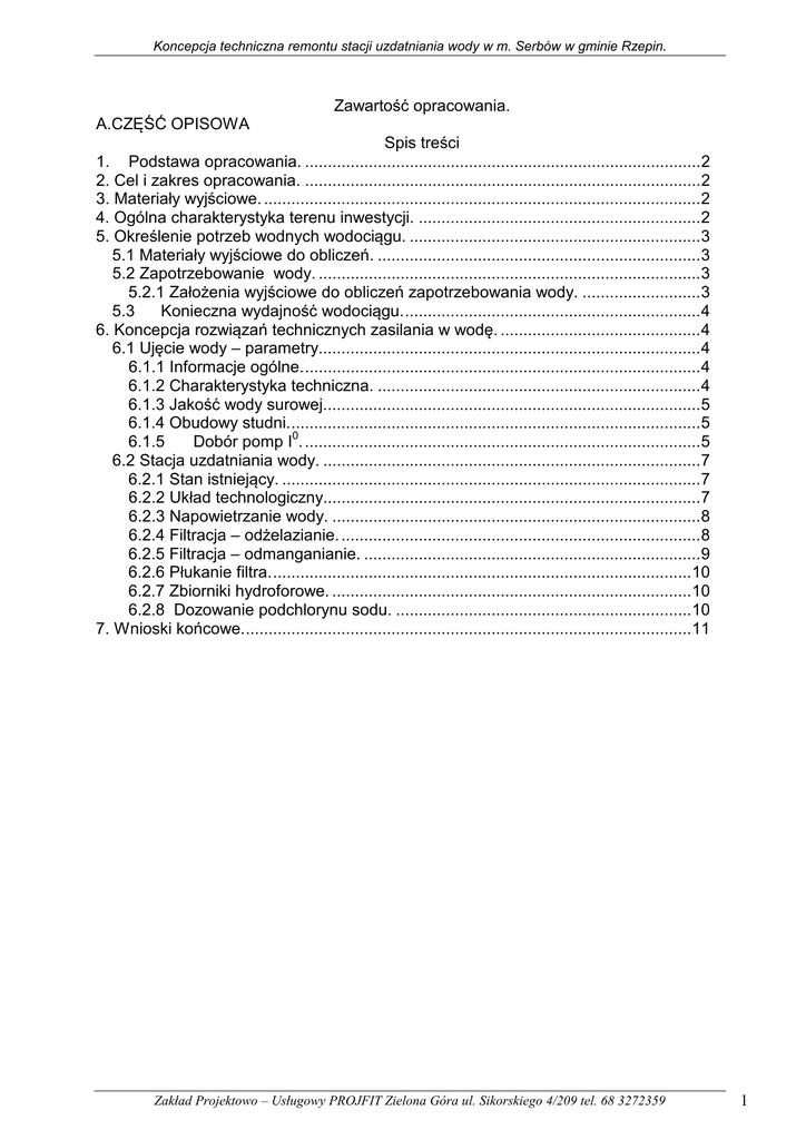 1 Zawartość opracowania. A.CZĘŚĆ OPISOWA Spis treści 1