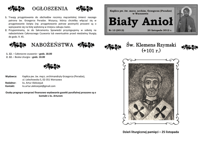 NABOśEŃSTWA NABOśEŃSTWA OGŁOSZENIA Św. Klemens