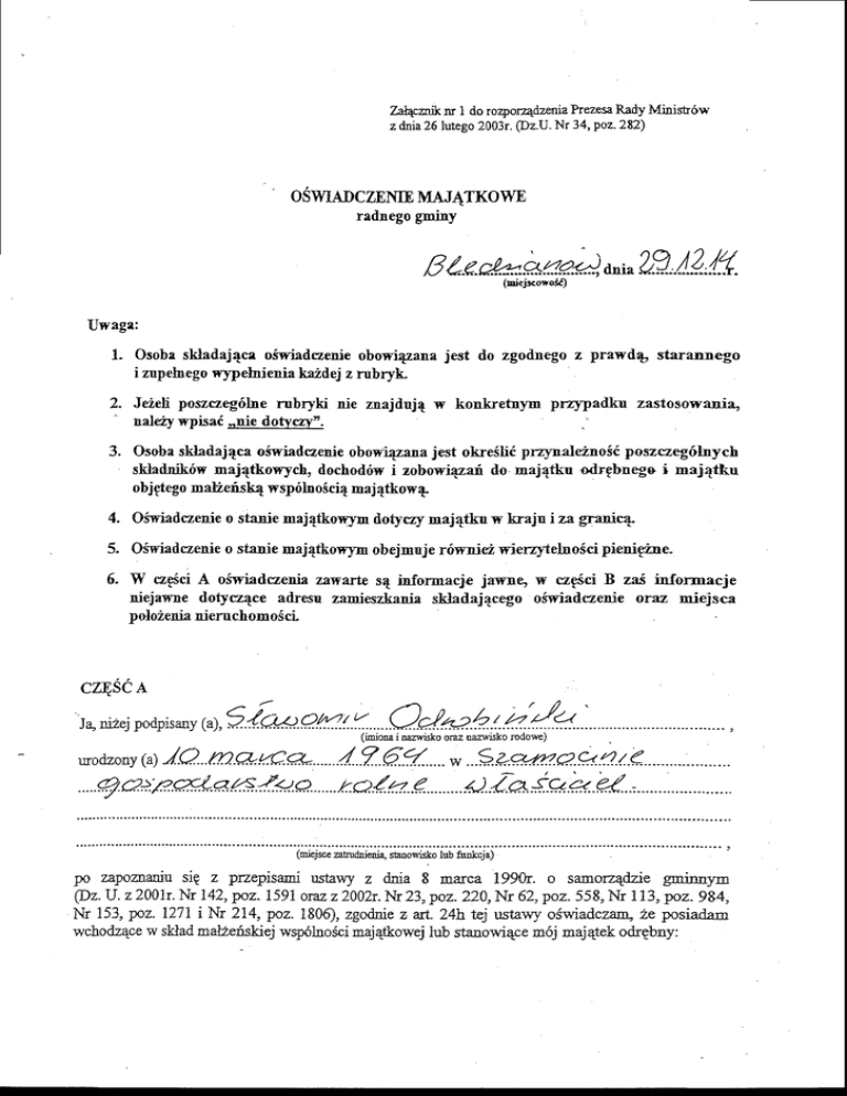1. Osobasklailaj4ca osqriadczenieobowi43anajest do zgotlnego z prawdq starannego