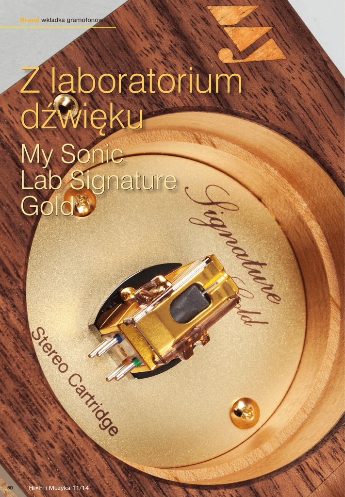 Hi-end wkładka gramofonowa Z laboratorium dźwięku My Sonic Lab Signature Gold 50 Hi•Fi i Muzyka 11/14 Hi-end wkładka gramofonowa My Sonic Lab to jedna z wielu niszowych manufaktur działających w Kraju Kwitnącej Wiśni. Czy o firmie założonej w 2003 roku można powiedzieć „legendarna”? Okazuje się, że tak. W nazwie My Sonic Lab zawarte są inicjały właściciela – Yoshio Matsudairy. Paweł Gołębiewski oshio Matsudaira rozpoczął karierę w 1959 roku, w Tokyo Sound Co, gdzie zajmował się projektowaniem wkładek i ramion gramofonowych na potrzeby Japanese National Broadcast Co. Kolejne lata Matsudaira-san poświęcił rozwijaniu konstrukcji komponentów analogowych, głównie wkładek, ale także gramofonów i stopni korekcyjnych dla innych wytwórców. Ich nazwy spowodują żywsze bicie serca wielu z Was: Koetsu, Miyabi, Audio Craft. To najwyższa światowa półka. Co zatem zdecydowało o podjęciu po tylu latach decyzji, by stworzyć nową markę? Odpowiedź na powyższe pytanie zawarta jest w opisie założeń konstrukcyjnych MSL. Zadaniem wkładki gramofonowej jest przekształcenie drgań igły śledzącej rowek płyty winylowej w prąd elektryczny, odpowiadający odczytywanym sygnałom, z jak najmniejszą ingerencją własną w sygnał i jak najmniejszą stratą energii. Uzyskanie wysokiego napięcia wyjściowego nie stanowi problemu technicznego, jednak w przypadku przetworników MC (z ruchomą cewką) wiąże się ze zwiększaniem masy cewki drgającej i powoduje degradację dźwięku. Z drugiej strony, nadmierne obniżanie napięcia generowanego przez wkładkę powoduje niekompatybilność z przedwzmacniaczami. Słabe sygnały są podatne na straty przy przesyłaniu oraz na zniekształcenia wprowadzane przy wzmacnianiu przekraczającym w tych przypadkach 1200 razy. Współczesne, wysokiej klasy niskonapięciowe przetworniki typu MC generują napięcie nominalne w zakresie 0,3-0,5 mV. W celu uzyskania jak najlepszej odpowiedzi wykorzystuje się silne układy magnetyczne (trzykrotnie silniejsze niż u zarania analogowych dziejów), uzwojenia z wysokooczyszczonych metali i supersztywne wsporniki igły (bor, diament). MSL zna te rozwiązania i podąża w nowym kierunku – produkuje silne rdzenie cewek umożliwiające stosowanie niewielkiej liczby zwojów drutu. Wykonuje je z materiału o nazwie SH-µX, będącego rozwinięciem wykorzystywanych wcześniej hyper Hi-BS/hyper Hi-µi. Dzięki temu wkładki mogą się pochwalić impedancją wewnętrzną rzędu 1-1,4 oma. Przekłada się to na lepsze odwzorowanie dynamiczne i zróżnicowanie basu. i lustrzaną powierzchnię. Z przodu zdobi ją logo My Sonic, a z boku wytłoczona nazwa modelu Signature Gold. Obudowę zamyka od góry płytka z utwardzanego aluminium, zmniejszająca przenoszenie drgań z ramienia i headshella. Diamentowe ostrze o szlifie Semi-line contact i wymiarach 3 x 30 µm zamontowano na wsporniku z duraluminium. Igłę ochrania nakładka z przezroczystego tworzywa. Wysokoefektywny, unikalny w skali światowej, układ generatora wytwarza napięcie wyjściowe 0,5 mV przy impedancji wewnętrznej 1,4 oma. Podatność układu wynosi 10 CU. Zakres siły nacisku zawiera się pomiędzy 1,9-2,2 g (zalecany 2,0 g). Sygnał wyprowadzają rodowane piny. Przetwornik umieszczono w drewnianym pudełku z wyfrezowaną cylindryczną komorą na wkładkę i podłużną na akcesoria (wkrętak, śrubki, szczoteczka). Akrylowa górna pokrywa, dokręcana Aluminiowa podstawa obudowy. W skromnym katalogu MSL wkładka Signature Gold znajduje się na szczycie cennika. Poniżej plasuje się pięć przetworników MC (monofoniczny Eminent Solo oraz stereofoniczne Eminent, Hyper Eminent, Ultra Eminent Be i Eminent GL), dwa transformatory dopasowujące MC (Stage 1030, Stage 302), headshell oraz drobne akcesoria (przewody połączeniowe wkładki oraz zestaw śrubek mocujących). Budowa Wiele wkładek jest po prostu pięknych. A Signature Gold jest przepiękna. Korpus wykonano z aluminium lakierowanego na kolor złoty. Ma lekko zaoblony kształt mosiężnymi wkrętami, pozwala podziwiać zawartość. To wykwintne pudełko sygnuje jego producent – Takamine. Konfiguracja Instrukcja zaleca stosowanie transformatorów dopasowujących i wzmacniających (step-up) o niskiej impedancji oraz wzmocnieniu około 20-26 dB. Step-up należy podłączyć do wejścia MM stopnia korekcyjnego. W przypadku aplikacji aktywnych stopni wzmacniających zalecana jest impedancja obciążenia w zakresie 100-800 omów (optymalnie 200 omów). Jeden z akapitów instrukcji opisuje zasady doboru ramienia. Preferowane są Hi•Fi i Muzyka 11/14 51 Hi-end wkładka gramofonowa ramiona wykonane w tradycyjnych technikach (jakich – nie do końca wiadomo, ale chyba nie karbonowe), nie za ciężkie i nie za lekkie. Producent wypowiada się także na temat napędów gramofonowych, zalecając montaż wkładki w gramofonach zapewniających jak najmniejsze narażenie na wibracje przenoszone z silnika, np. o miękkim zawieszeniu. O ile SME-312 wydaje się świetnym wyborem dla MSL, to Garrard 401 – jako napęd rolkowy i sztywny – już niekoniecznie. Nie doznałem jednak z tego powodu żadnych nieprzyjemności, a wprost przeciwnie, o czym poniżej. Źródło uzupełniał gramofonowy stopień korekcyjny Amplifikator Pre-Gramofonowy z zasilaniem akumulatorowym. Pozostałe elementy systemu stanowiły wzmacniacze: dzielony tranzystorowy McIntosh C-48/MC-252 i zintegrowany lampowy Audio Research VSi60, kolumny ATC SCM-35 i Kudos X2 oraz przewody Fadel Coherence One (łączówka, głośnikowe i zasilające wraz z listwą). Urządzenia stały na stolikach StandArt STO i SSP. System grał w zaadaptowanym akustycznie pokoju o powierzchni około 36 m². Montaż przetwornika nie sprawił najmniejszych problemów. Po kilku próbach dopasowania Amplifikatora zdecydowałem się na wybór 200-omowej wartości obciążenia. Zestaw pozostawał wolny od jakichkolwiek przydźwięków. 