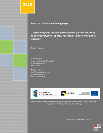 2010 Raport z badania ewaluacyjnego: „Ocena wpływu środków pomocowych (w tym RPO WŁ) na rozwój turystyki, sportu, rekreacji i kultury w regionie łódzkim” Raport końcowy Zamawiający: Urząd Marszałkowski w Łodzi Al. Piłsudskiego 8 90-051 Łódź Wykonawca: CASE-Doradcy Sp. z o.o. ul. Sienkiewicza 12 00-010 Warszawa Badanie realizowane w ramach projektu współfinansowanego przez Unię Europejską z Europejskiego Funduszu Rozwoju Regionalnego Warszawa, 29 września 2010r. Streszczenie raportu Głównym celem badania była ocena wpływu środków strukturalnych na rozwój turystyki, sportu, rekreacji i kultury w regionie łódzkim. W ocenie uwzględniono następujące aspekty badawcze: analizę bazy sportowej, turystycznej i kulturalnej, analizę przystawalności zapisów Strategii Województwa Łódzkiego z roku 2000 i 2007 w kontekście badanych inwestycji, analizę wskaźników produktu, rezultatu i oddziaływania w ramach Programu ZPORR, analizę rozmieszczenia geograficznego zrealizowanych projektów w kontekście alokacji środków na obszarach o walorach kulturowo – przyrodniczych oraz atrakcyjnych turystycznie. Badanie ewaluacyjne bazowało na podejściu opartym na teorii (Theory based evaluation), która koncentrowała się na zidentyfikowaniu, jakie założenia i teorie leżą u podstaw danego programu (projektu) w wymienionych powyżej obszarach, a następnie sprawdzeniu czy rzeczywiście takie relacje zachodzą i czy efekty rzeczywiście zostały osiągnięte. W ramach prac nad opracowaniem raportu zostały wykorzystane różnorodne metody badawcze. Były to m.in. badanie ilościowe metodą CATI, pogłębione wywiady indywidualne, panel ekspertów, studia przypadku, wykorzystanie techniki „mystery calling”, a także wykorzystano szereg metod analitycznych. W ramach każdego z badanych obszarów: sport, turystyka i kultura dokonano: analizy sektora, charakterystyki projektów realizowanych w ramach NPR 2004-2006, analizy wpływu projektów na instytucje beneficjenta, analizy wpływu projektów na grupy docelowe oraz najbliższe otoczenie oraz wpływu projektów na cały region. Podsumowanie analiz w ramach poszczególnych obszarów kończy przedstawienie kluczowych wniosków z analizy, które stanowiły podstawę do przygotowania rekomendacji. Ponadto raport zawiera także charakterystykę potencjalnych efektów projektów, realizowanych w ramach NSS 2007-2013 oraz analizę zgodności inwestycji ze Strategią Rozwoju Województwa na lata 2007-2020. Rezultatem przeprowadzonych analiz w badanych sektorach było przygotowanie rekomendacji, które pozwalają na ich bezpośrednie operacyjne zastosowanie. Rekomendacje zostały przygotowane w oparciu o cztery zasadnicze segmenty, które są ze sobą wzajemnie, krzyżowo powiązane: - myślenie strategiczne na poziomie regionu, - komunikacja wewnątrz władz regionu, - myślenie strategiczne na poziomie (sub) lokalnym, - identyfikacja efektów na poziomie projektu. Wymienione powyżej trzy pierwsze elementy mają zasadniczy wpływ na pojawienie się czwartego czynnika dotyczącego identyfikacji efektów na poziomie projektu. W rezultacie prowadzi to do jednego z najważniejszych wniosków badania: braku umiejętności identyfikacji efektów zrealizowanych projektów przez samych beneficjentów. Oznacza to, że beneficjenci nie potrafili precyzyjnie opisać rezultatów i oddziaływań swoich przedsięwzięć, dokonać pomiaru rzeczywistych wpływów projektów na bezpośrednie i pośrednie otoczenie. Raport został przygotowany przez zespół w składzie: dr Paweł Kościelecki, dr Paweł Strawiński, Barbara Warzybok, Milena Pacholska. 2 SPIS TREŚCI Streszczenie raportu......................................................................................................................................... 2 Wprowadzenie ................................................................................................................................................. 4 1. Opis metodologii wraz ze źródłami informacji......................................................................................... 5 2. Wyniki badań w zakresie projektów sportowych .................................................................................. 15 2.1 Sytuacja w sektorze .................................................................................................................................... 15 2.2 Charakterystyka projektów, realizowanych w ramach NPR 2004-2006 ..................................................... 16 2.3 Wpływ projektów na instytucje beneficjenta............................................................................................. 20 2.4 Wpływ projektów na grupy docelowe oraz najbliższe otoczenie ............................................................... 22 2.5 Wpływ projektów na cały region ................................................................................................................ 24 2.6 Podsumowanie analizy – kluczowe wnioski z analizy ................................................................................ 26 3. Wyniki badań w zakresie projektów turystycznych ............................................................................... 27 3.1 Sytuacja w sektorze .................................................................................................................................... 27 3.2 Charakterystyka projektów, realizowanych w ramach NPR 2004-2006 ..................................................... 44 3.3 Wpływ projektu na instytucje beneficjenta .............................................................................................. 46 3.4 Wpływ projektu na grupy docelowe oraz najbliższe otoczenie ................................................................. 51 3.5 Wpływ projektu na cały region .................................................................................................................. 