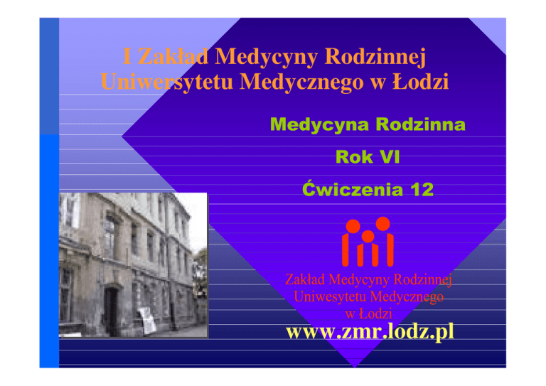 I Zakład Medycyny Rodzinnej Uniwersytetu Medycznego w Łodzi Medycyna Rodzinna Rok VI Ćwiczenia 12 www.zmr.lodz.pl Wiodące tematy zajęć: •Racjonalna terapia w medycynie rodzinnej. •Racjonalna antybiotykoterapia infekcji dróg oddechowych. •Farmakoekonomika w praktyce LR. © I ZMR UM w Łodzi, 2008 Wiodące tematy zajęć: •Racjonalna terapia w medycynie rodzinnej. •Racjonalna antybiotykoterapia infekcji dróg oddechowych. •Farmakoekonomika w praktyce LR. © I ZMR UM w Łodzi, 2008 Racjonalne stosowanie leków Racjonalny wybór leków powinien: • maksymalizować skuteczność terapeutyczną • minimalizować zagrożenia • uwzględniać preferencje chorego • minimalizować koszt terapii Waller DG. Racjonalna farmakoterapia: zasady wyboru leków i oceny ich skuteczności. Med. Po Dypl 2005; 14(11): 45-51. © I ZMR UM w Łodzi, 2008 Nieracjonalne stosowanie leków Temat do dyskusji: Kto jest odpowiedzialny za nieprawidłowe stosowanie leku: • lekarz • aptekarz (np. antybiotyki, leki sedatywne bez Rp) • pacjent (nieprzestrzeganie zaleceń lekarskich) © I ZMR UM w Łodzi, 2008 Stosowanie leków Racjonalne Nieracjonalne • Właściwa diagnoza • Niewłaściwa diagnoza • Właściwy lek • Niewłaściwy lek • Prawidłowe stosowanie leku • Nieprawidłowe stosowanie leku © I ZMR UM w Łodzi, 2008 Nieracjonalne stosowanie leków Temat do dyskusji: Niewłaściwa diagnoza i jej konsekwencje • astma / alergia a infekcja • infekcja a niewydolność krążenia • kamica pęcherzyka a zespół jelita nadwrażliwego © I ZMR UM w Łodzi, 2008 Nieracjonalne stosowanie leków Temat do dyskusji: Niewłaściwy lek: • leki przeczyszczające • leki homeopatyczne • leki nasercowe i przeciwtarczycowe • leki sedatywne i leki przeciwdepresyjne © I ZMR UM w Łodzi, 2008 Nieracjonalne stosowanie leków Temat do dyskusji: Nieprawidłowe stosowanie leku: • właściwa dawka • choroby współistniejące • leki towarzyszące • przestrzeganie zaleceń lekarskich © I ZMR UM w Łodzi, 2008 Racjonalne stosowanie leków Proces wyboru leku obejmuje m.in.: • ustalenie rozpoznania (lub alternatywnych rozpoznań) • określenie rokowania w danej jednostce chorobowej • ustalenie celu / celów farmakoterapii (np. wyleczenie, łagodzenie objawów, zapobieganie, pomoc w dalszej diagnostyce klinicznej) • wybór odpowiedniego rodzaju terapii Waller DG. Racjonalna farmakoterapia: zasady wyboru leków i oceny ich skuteczności. Med. Po Dypl 2005; 14(11): 45-51. © I ZMR UM w Łodzi, 2008 Racjonalne stosowanie leków Monitorowanie przebiegu terapii • Często punkt końcowy jest subiektywny (np. efekt przeciwbólowy w zapaleniu stawów) • W badaniach klinicznych takie subiektywne efekty leczenia mierzy się za pomocą standaryzowanych narzędzi (np. skala oceny bólu) • W praktyce klinicznej najczęstszym kryterium powodzenia terapii jest zadowolenie chorego Waller DG. Racjonalna farmakoterapia: zasady wyboru leków i oceny ich skuteczności. Med. Po Dypl 2005; 14(11): 45-51. © I ZMR UM w Łodzi, 2008 Racjonalne stosowanie leków w celach profilaktycznych • Jeśli lek okazał się w skuteczny w badaniach populacyjnych, oznacza to jedynie, że podając go danemu pacjentowi, możemy spodziewać się określonego prawdopodobieństwa niewystąpienia niepożądanego stanu klinicznego • Większość leków stosowanych w profilaktyce nie eliminuje ryzyka niekorzystnego przebiegu choroby, a tylko je ogranicza (np. choć stosowanie statyny zmniejsza ryzyko zawału serca, to wystąpi on u wielu chorych przyjmujących ten lek) Waller DG. Racjonalna farmakoterapia: zasady wyboru leków i oceny ich skuteczności. Med. Po Dypl 2005; 14(11): 45-51. © I ZMR UM w Łodzi, 2008 Racjonalne stosowanie leków • Po dołączeniu nowego leku stosowanie niektórych wcześniej przyjmowanych preparatów może już nie być konieczne, dlatego należy regularnie oceniać potrzebę dalszego podawania każdego leku • Użycie leku celem zneutralizowania działań niepożądanych innego leku jest nieracjonalne, jeśli pierwotnie podany lek można zastąpić innym • Niepotrzebne stosowanie drogich leków, kiedy dostępne są tańsze odpowiedniki, jest nieuzasadnione. Użycie tych leków jest usprawiedliwione, kiedy zamienniki są mniej skuteczne lub gorzej tolerowane Waller DG. Racjonalna farmakoterapia: zasady wyboru leków i oceny ich skuteczności. Med. Po Dypl 2005; 14(11): 45-51. © I ZMR UM w Łodzi, 2008 Racjonalne stosowanie leków u ludzi starszych musisz uwzględnić: • cele leczenia • choroby towarzyszące, wileochorobowość • mechanizmy kompensacyjne (start low and go slow) • cena leków © I ZMR UM w Łodzi, 2008 Nieracjonalne stosowanie leków Temat do dyskusji: Podaj przykłady leków OTC (over-the-counter) z różnych grup terapeutycznych: • .... • .... • .... • .... • Dlaczego te leki dostępne są bez recepty? © I ZMR UM w Łodzi, 2008 Nieracjonalne stosowanie leków Racjonalność stosowania leków OTC Przypadek 1 35-letni pracownik banku przyszedł do ciebie informując, że od 3 dni jest przeziębiony i stosował już vit. C, Rutinoscorbin, Gripex, Coldrex Max, Polopirynę i Apap, ale nie pomogło. Na tym przykładzie omów elementy istotne w przypadku leków OTC: • wskazania a rola reklamy • możliwe działania uboczne leków OTC • możliwość przyjmowania kilku leków o tym samym składzie © I ZMR UM w Łodzi, 2008 Nieracjonalne stosowanie leków Racjonalność stosowania leków OTC Temat do dyskusji: • celowość i bezpieczeństwo zastępowania przez leki OTC leków dostępnych na receptę • od 2004 simvastatyna 10 mg dostępna w UK bez RP • FDA nie wyraziło zgody na sprzedaż statyn jako OTC w USA, bo: •brak pewności czy pacjenci mogą samodzielnie określić wskazania •możliwość przeoczenia konieczności podniesienia dawki •brak osobistego kontaktu pacjenta z farmaceutą w USA •negatywna rola promocji OTC na promowan