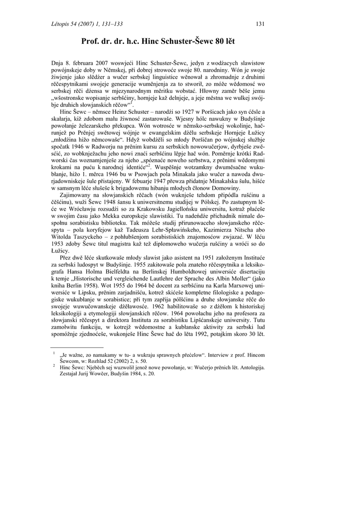 Prof. dr. dr. hc Hinc Schuster-Šewc 80 lět - Serbski