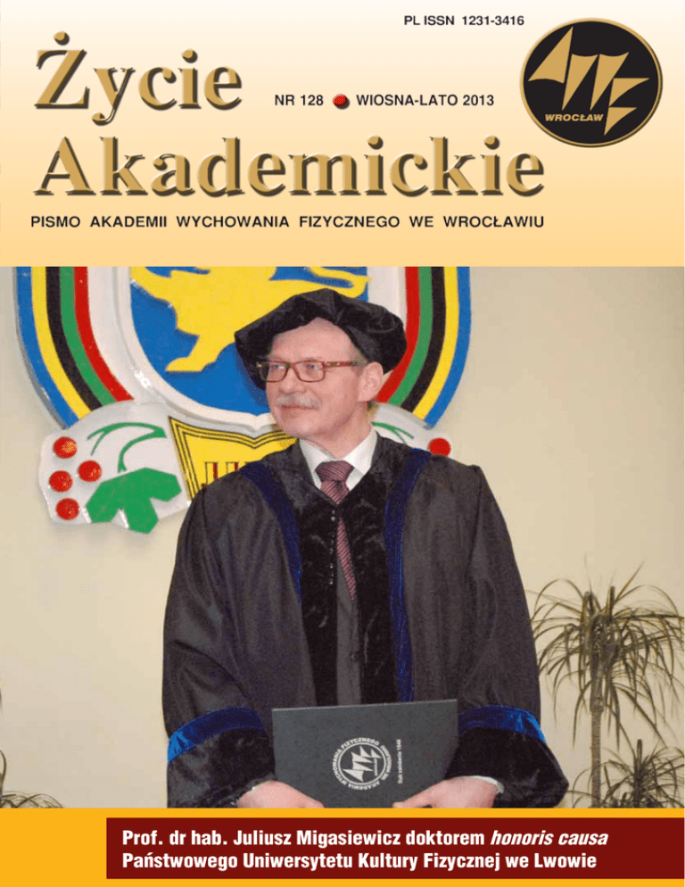 nr 128 – wiosna-lato 2013 49 Prof. dr hab. Juliusz Migasiewicz doktorem honoris causa Państwowego Uniwersytetu Kultury Fizycznej we Lwowie 9 kwietnia br. prof. dr hab. Juliusz Migasiewicz – rektor Akademii Wychowania Fizycznego we Wrocławiu – został uhonorowany tytułem doktora honoris causa Państwowego Uniwersytetu Kultury Fizycznej we Lwowie. Prof. Juliusz Migasiewicz jest pierwszym w historii naszej uczelni naukowcem, któremu tę zaszczytną godność akademicką nadała uczelnia zagraniczna. Doktorzy honoris causa Państwowego Uniwersytetu Kultury Fizycznej we Lwowie (www.ldufk.edu.ua): Walery Suszkiewicz (2008) – Prezydent Ukraińskiego Komitetu Sportu Inwalidów Sergiej Bubka (2008) – Prezydent Komitetu Olimpijskiego Ukrainy, mistrz olimpijski Wolfgang Gowin (2008) – naukowiec z Australia Stanisław Zaborniak (2010) – rektor Wyższej Szkoły Biznesu i Przedsiębiorczości w Ostrowcu Świetokrzyskim Henryk Sozański (2010) – profesor AWF w Warszawie Walery Borzow (2011) – pierwszy minister sportu Ukrainy (1990-97), dwukrotny mistrz olimpijski Bogdan Szyjan (2011) – zasłużony naukowiec i trener Ukrainy Wadim Zaporożanow (2011) – zasłużony naukowiec i trener Ukrainy Juliusz Migasiewicz (2013) – rektor AWF we Wrocławiu, profesor i trener ¯ycie Akademickie Pismo Akademii Wychowania Fizycznego we Wroc³awiu Siedziba redakcji: 51-617 Wrocław, ul. Witelona 25A, pok. 80 tel. 71 3473146; 602 695221 e-mail: [email protected] Redaktor naczelny: Anna Kiczko Redaktor techn.: Romuald Lazarowicz Drodzy Czytelnicy! W kolejnym numerze „Życia Akademickiego” możecie przeczytać o najważniejszych wydarzeniach na naszej uczelni, które miały miejsce wiosną oraz latem. Ważnym momentem w życiu naszej społeczności było otrzymanie przez rektora prof. Juliusza Migasiewicza honorowego tytułu doktora Uniwersytetu Kultury Fizycznej we Lwowie. Przedstawiamy relację i wywiad z JM Rektorem. Piszemy także o osiągnięciach naszej Akademii w ogólnopolskich rankingach „Perspektyw” i „Polityki” oraz o zdobyciu certyfikatu „Uczelni Liderów”. Wiosna to czas obchodów studenckiego święta Juwenaliów oraz środowiskowych zabaw uczelnianych, w naszym przypadku Awuefaliów, oraz innych imprez organizowanych przez samorząd studencki, jak wybory miss uczelni czy ogólnopolski korespondencyjny maraton pływacki Ekiden. Mamy też relacje z gali plebiscytowych kończących zarówno konkurs AZS Środowisko na najlepszego studenta i trenera akademickiego Dolnego Śląska, jak i jubileuszowy XX Plebiscyt „Życia Akademickiego”na najlepszego studenta i trenera AWF i AZS AWF Wrocław. Nasza Akademia wraz z uczelnianym klubem sportowym AZS AWF była organizatorem „Dolnoślą- skich Dni Sportu” – wielkiej imprezy rekreacyjnej, w której wzięło udział ponad 2,5 tys. mieszkańców Wrocławia. Piszemy także o 30-leciu uczelnianego Zespołu Tańca Ludowego „Kalina”, przedstawiając relację z uroczystej gali w Teatrze Polskim. Dużym wydarzeniem tej wiosny była kolejna konferencja zorganizowana przez pracowników Wydziału Fizjoterapii z cyklu „Dni fizjoterapii”. Dolnośląskie Onkoigrzyska Dzieci i Młodzieży także weszły już do kalendarza imprez współorganizowanych przez naszą uczelnię; tego roku mieliśmy na Stadionie Olimpijskim już szóstą ich edycję. Oczywiście z dumą prezentujemy międzynarodowe i krajowe sukcesy sportowe studentów naszej uczelni. Informujemy także o przeznaczonych głównie dla nich „Złotych wykładach”, w czasie których znane osobistości świata nauki czy sportu przedstawiają swoje osiągnięcia. Prezentujemy w skrócie treści obrad na forum Kolegium Rektorów Uczelni Wrocławia, Opola i Zielonej Góry oraz Kolegium Rektorów Polskich AWF. To już koniec prezentacji nowego numeru „Życia Akademickiego”. Życzę Państwu udanych wakacji! Redaktor Naczelny dr Anna Kiczko Spis treści Prof. dr hab. Juliusz Migasiewicz doktorem honoris causa Państwowego Uniwersytetu Kultury Fizycznej we Lwowie......... 2 Jesteśmy trybikami dużej maszynerii (Rozmowa z rektorem prof. dr. hab. Juliuszem Migasiewiczem)...... 7 Nasza Akademia znów najlepsza w rankingu szkół wyższych....... 10 Nasza Akademia najlepsza w rankingu naukowym........................ 12 Nasza Akademia zdobywa certyfikat „Uczelni Liderów”.................. 13 Kolegium Rektorów Uczelni Wrocławia, Opola i Zielonej Góry ...... 14 Sukces studentki naszej uczelni w konkursie „Wrocławska Magnolia”......................................... 16 Uczelniana Konferencja Naukowa STN.......................................... 17 AWueFalia 2013 .............................................................................. 19 Wybory Miss AWF Wrocław 2013................................................... 20 Dolnośląska Gala Sportu Akademickiego....................................... 22 XX Plebiscyt „Życia Akademickiego” na najlepszego sportowca i trenera AWF i AZS AWF Wrocław w 2012 roku...................... 24 Wyniki plebiscytu.............................................................................. 25 Specjalny dyplom dla red. naczelnego „Życia Akademickiego”..... 26 Organizatorzy uroczystej gali oraz plebiscytu................................. 26 Dolnośląskie Święto Sportu............................................................. 27 Uroczyste podsumowanie Dolnośląskiego Święta Sportu.............. 30 VIII Międzynarodowe Dni Fizjoterapii.............................................. 31 VI Dolnośląskie Onkoigrzyska Dzieci i Młodzieży .......................... 33 Odnowiony sztandar klubu AZS AWF Wrocław.............................. 35 Rajd AWFiaka.................................................................................. 35 XXX lat „Kaliny”................................................................................ 36 „Ekiden” – studencki maraton pływacki............................