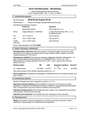Karta Charakterystyki - Aktualizacja Shell Ensis Engine Oil 20