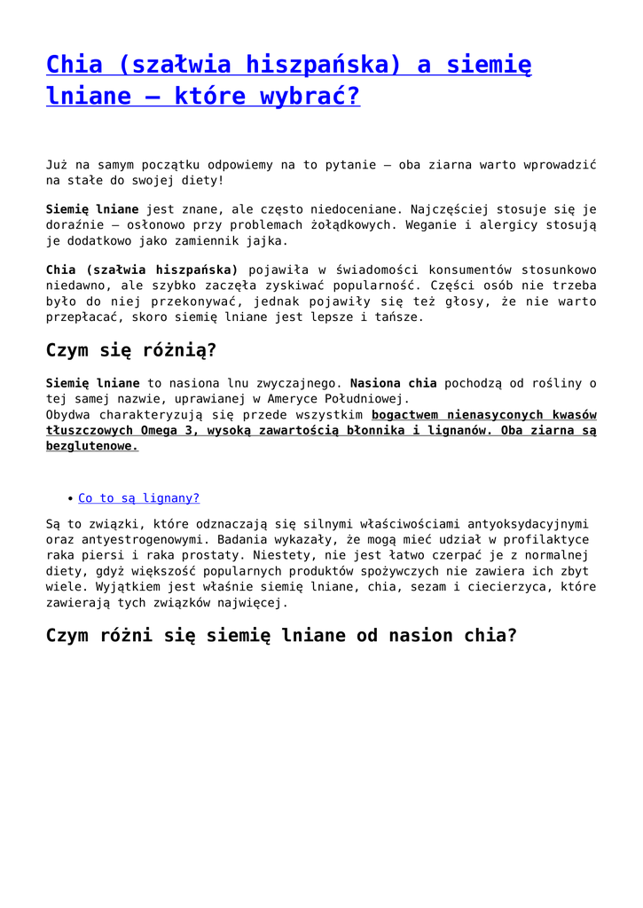 Chia (szałwia hiszpańska) a siemię lniane – które wybrać?